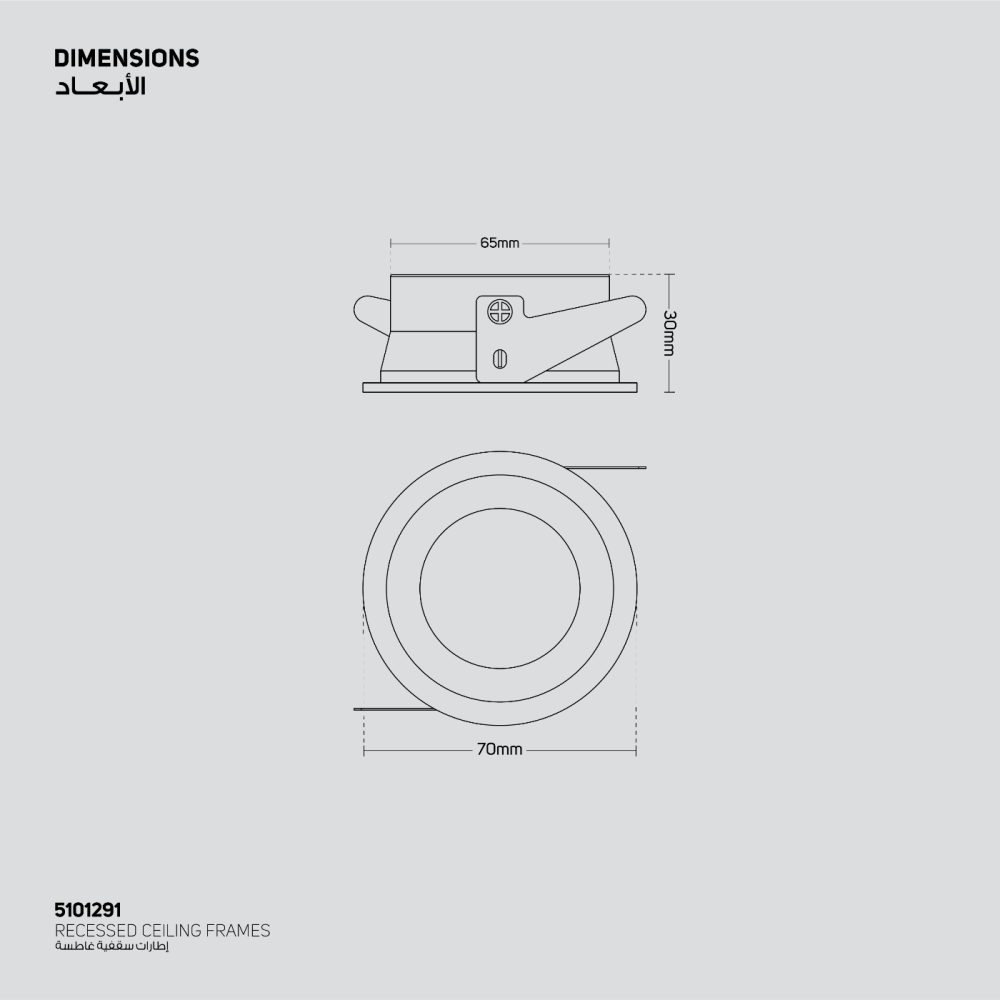 أبعاد التثبيت (مقاس القص): القطر 65 مم