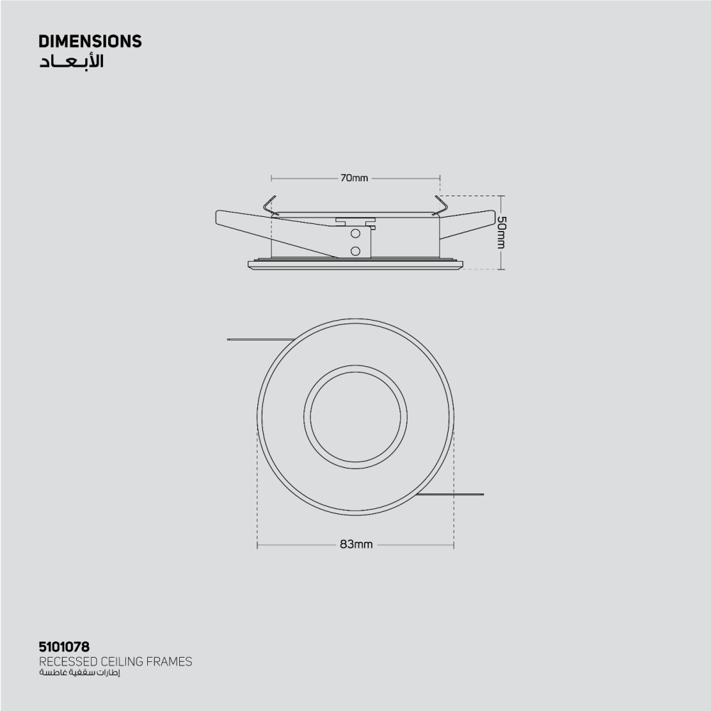 إطار سقفي دائري غاطس غير متحرك بمقاس قص 70مم