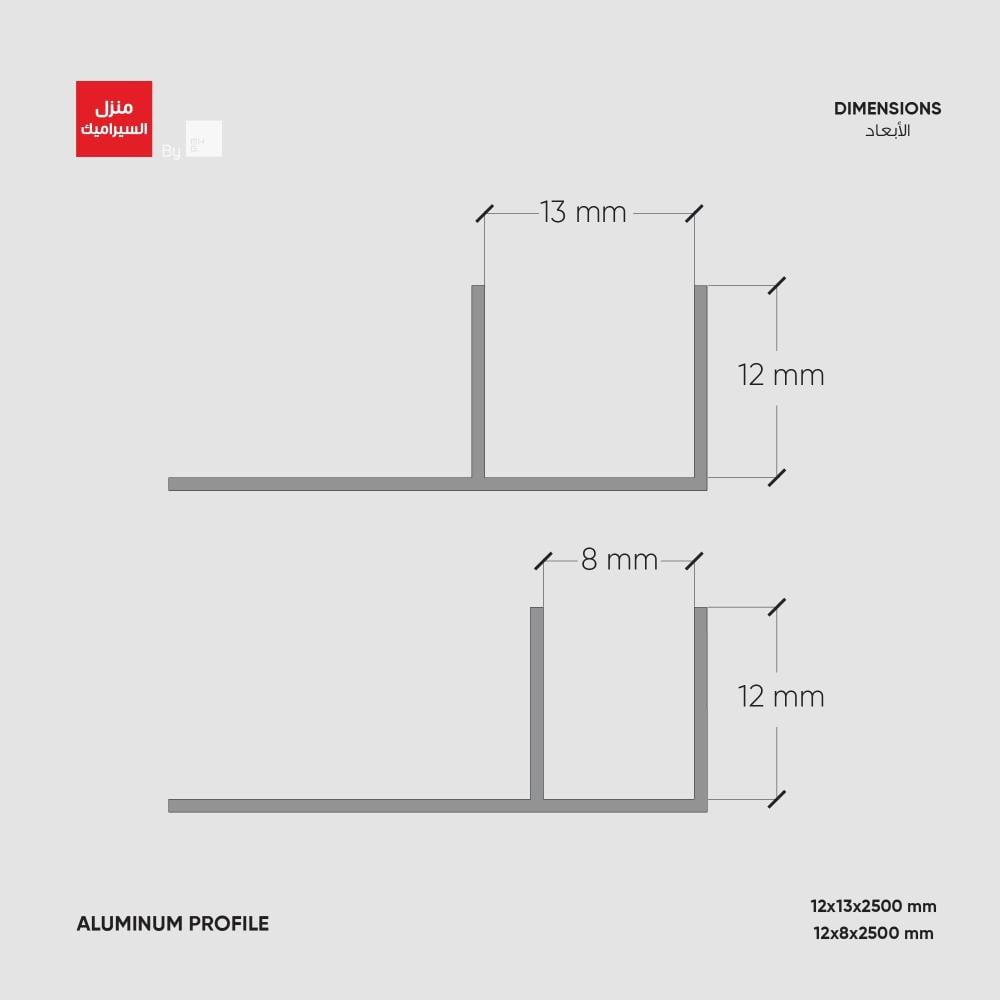 الأبعاد: 12X9x2500 ملم او 12X13x2500 ملم