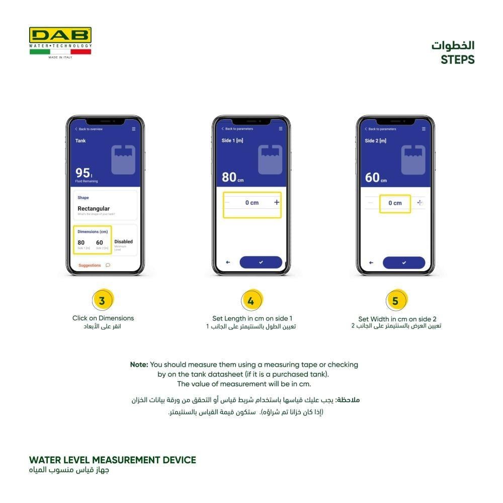 - يمكن مراقبة والتحكم بمستوى المياه داخل الخزان عبر تطبيق "Dconnectbox 2"، وإرسال الإشعارات بمستوى المياه.