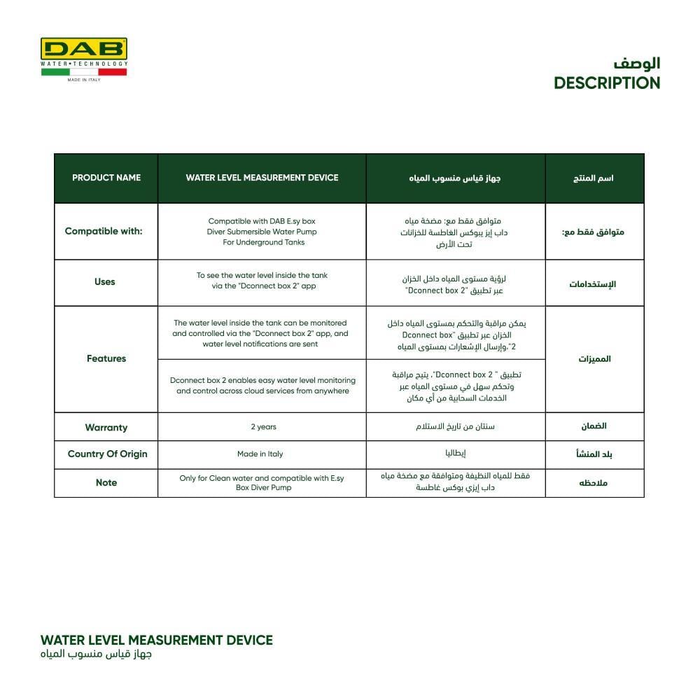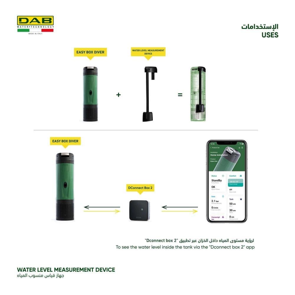 - تطبيق "Dconnectbox 2"، يتيح مراقبة وتحكم سهل في مستوى المياه عبر الخدمات السحابية من أي مكان.