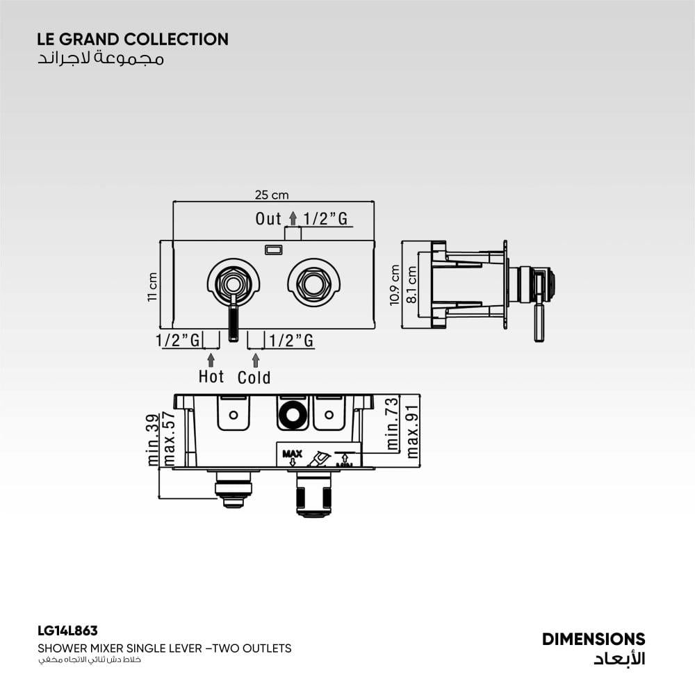 إرشادات التركيب: ينصح بتأسيس المواسير للخلاط داخل الجدار على ارتفاع 120 سم من الأرض