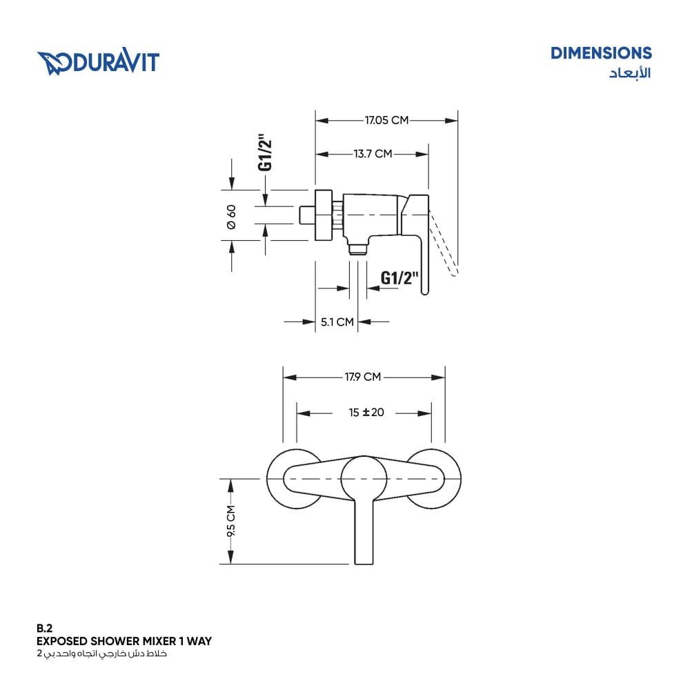 المسافة بين منتصف فتحي مصدر الماء: 15 Cm ± 2CM