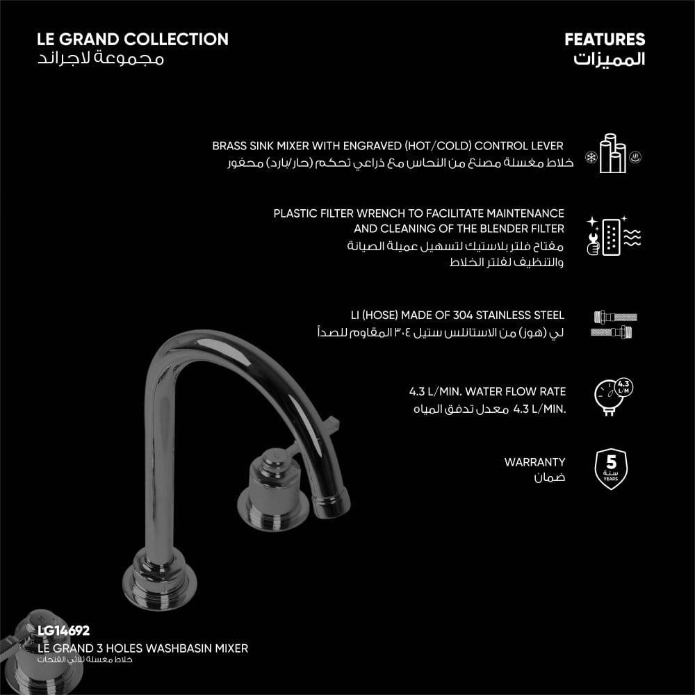- خلاط المغسلة مع ذراعي تحكم حار أو بارد