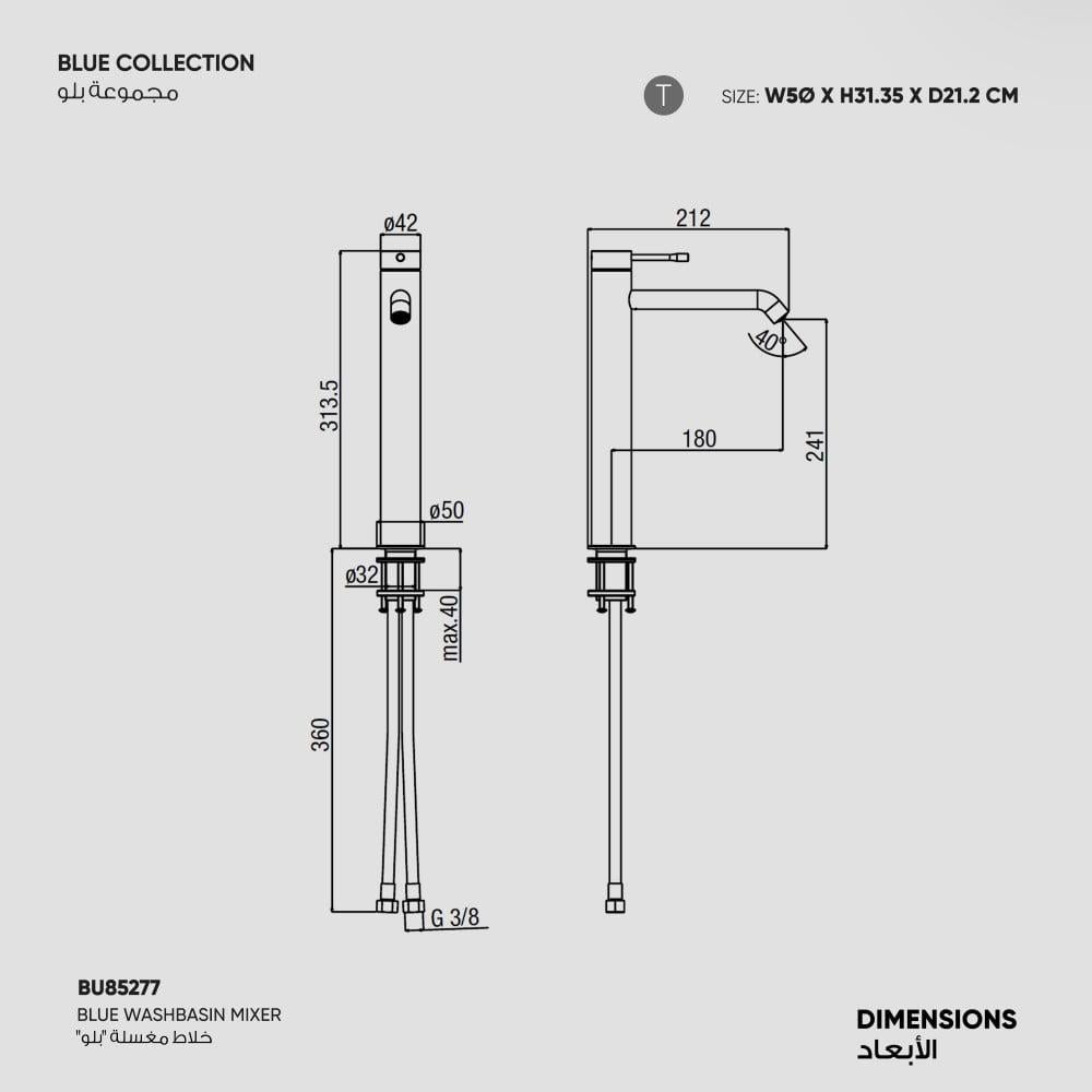 المسافة من السطح الى فتحة الصنبور 16 سم