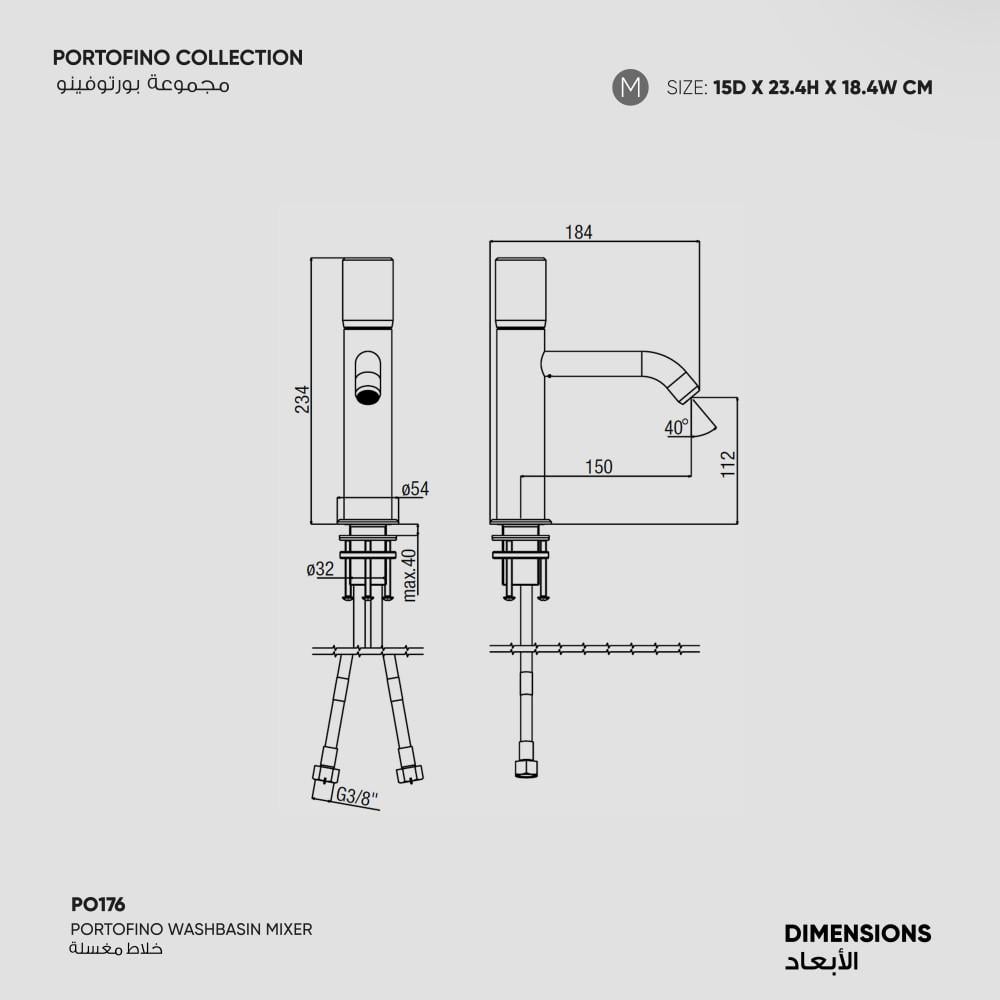 الإرتفاع 23.4 * العمق 15 * القطر 18.40 سم