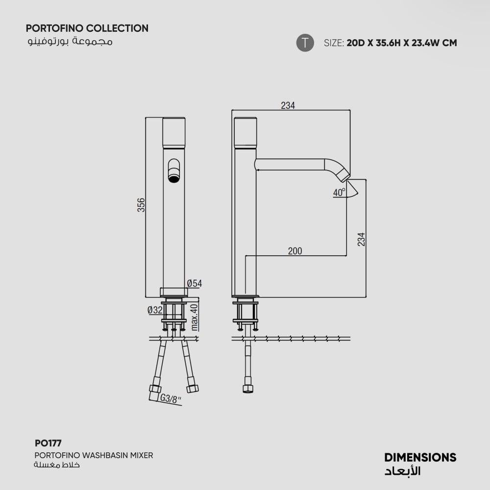 الإرتفاع 35.6 * العمق 20 * القطر 23.40 سم