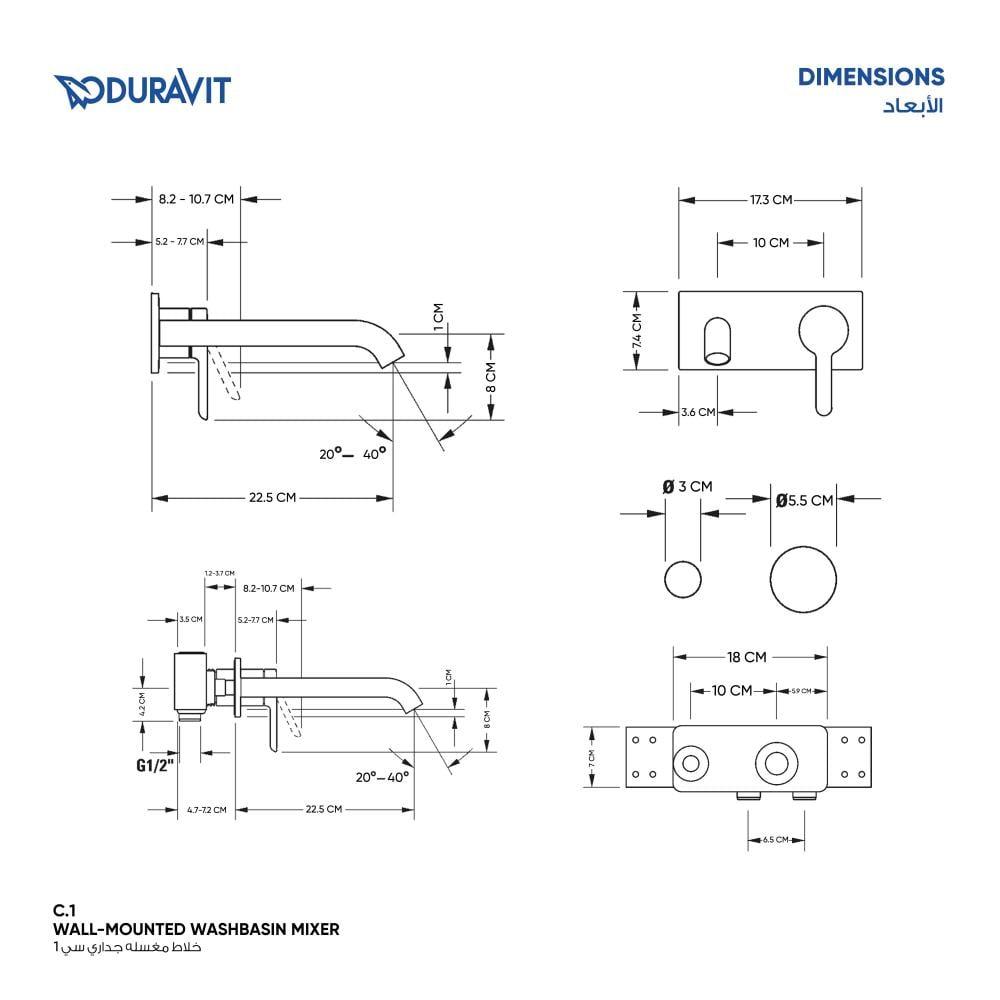 أبعاد المنتج: 173*225 مم طول الصباب: 225 مم