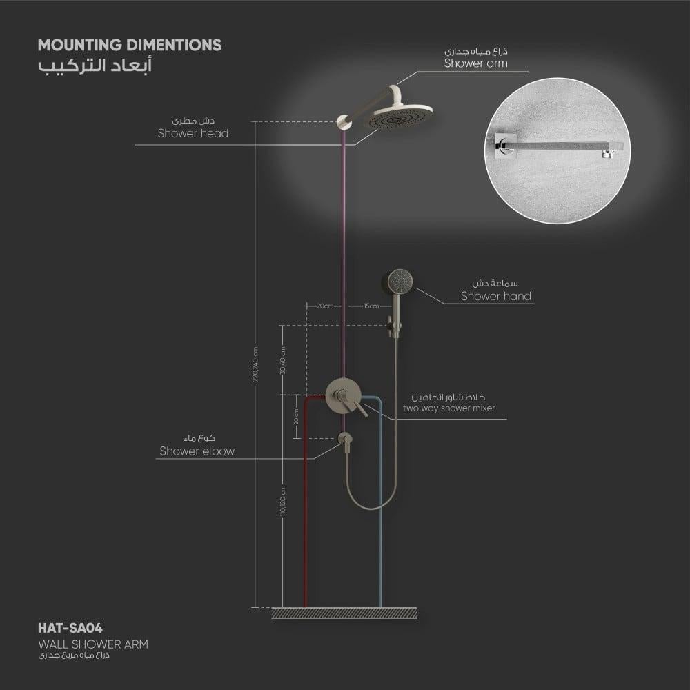 ذراع دش مطري جداري مربع SA04