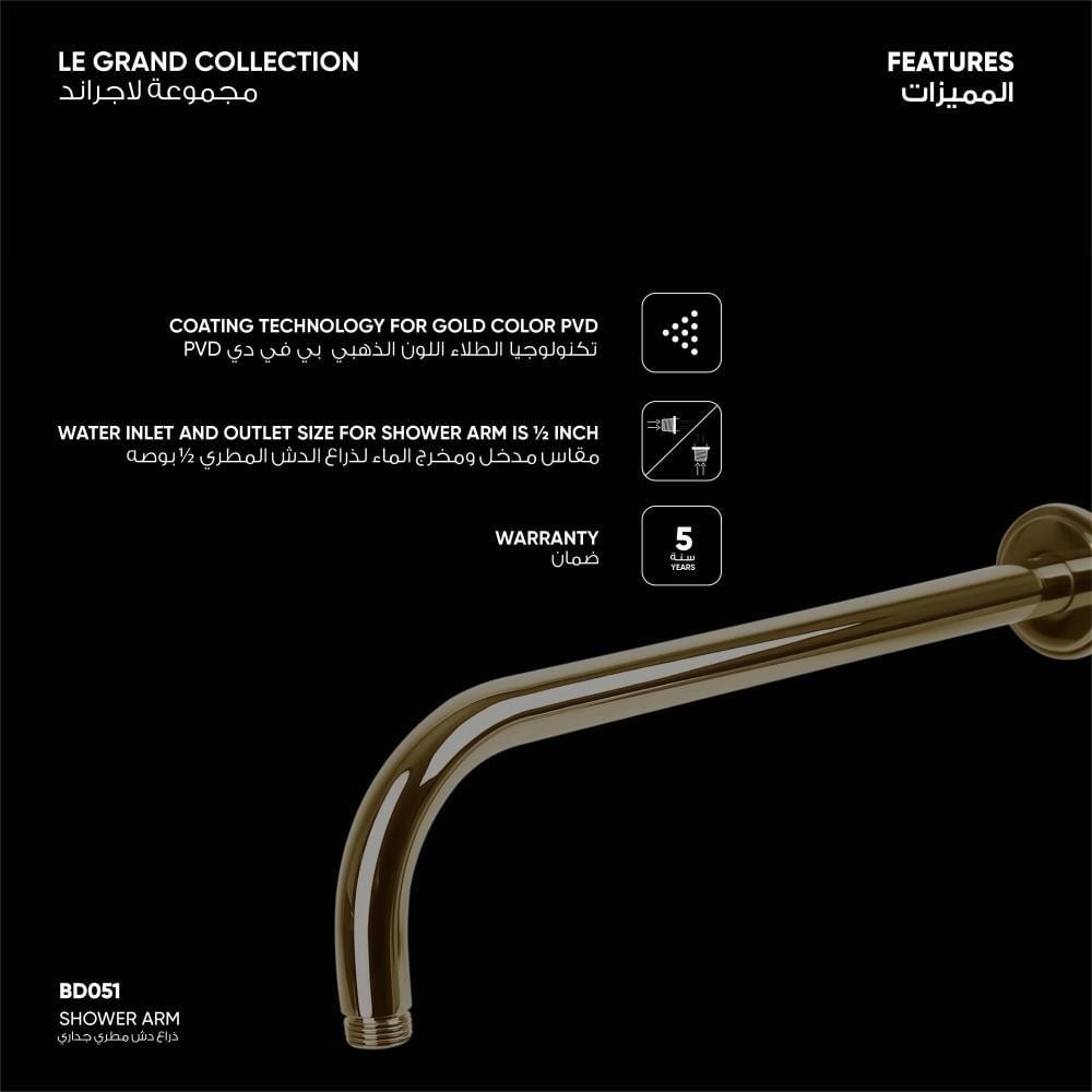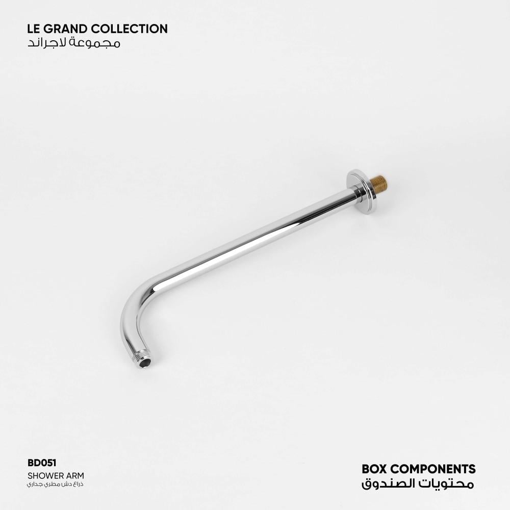 إرشادات التركيب: ينصح بتأسيس المواسير داخل الجدار على ارتفاع 210 سم من مستوى الأرض لتركيب الذراع