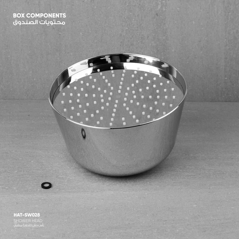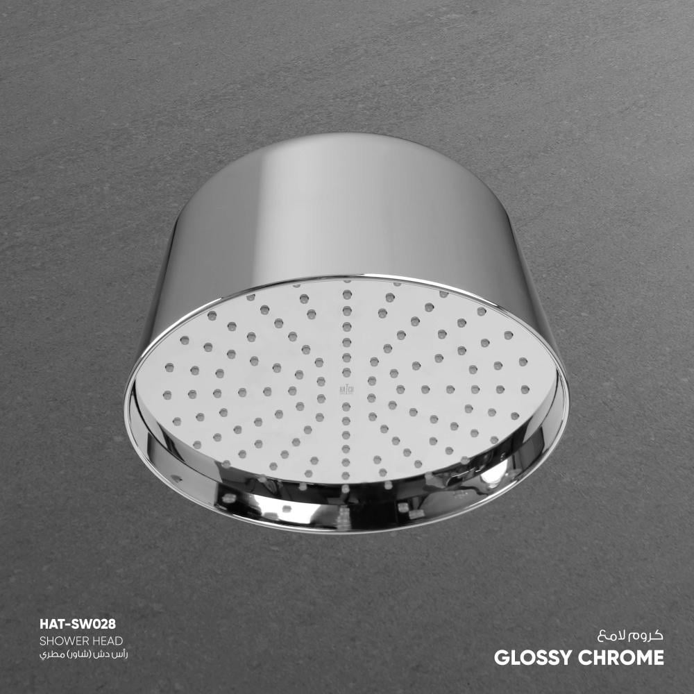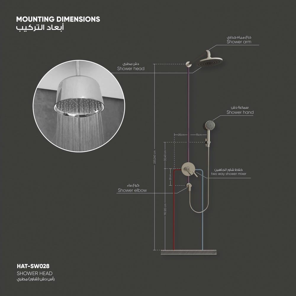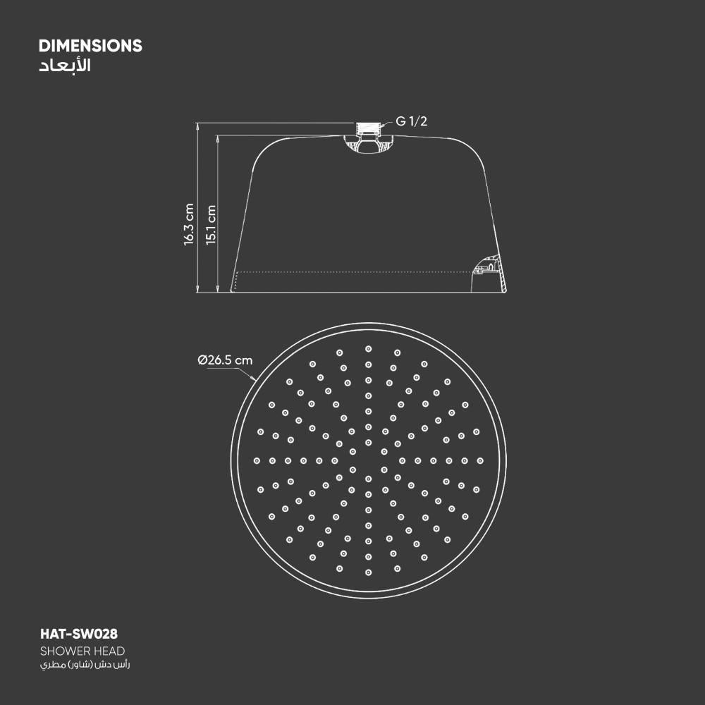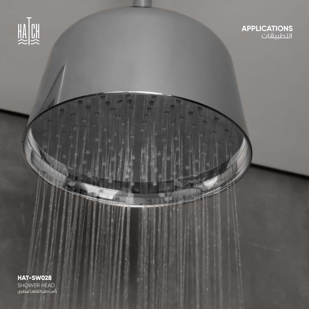 المادة: رأس دش مطري من البلاستيك عالي الجودة وسطح مخرج المياه من الاستانلس ستيل 304 مع مدخل ماء نص بوصة من النحاس