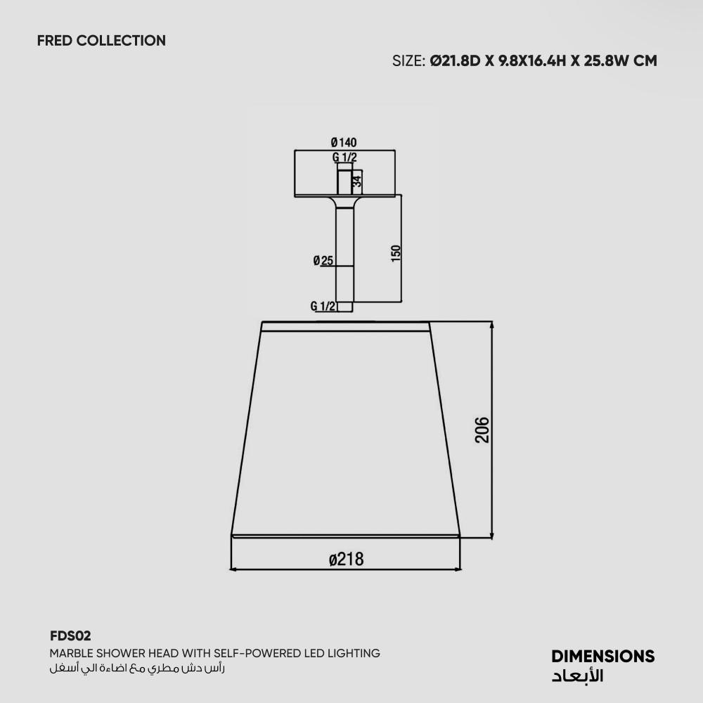 الابعاد: قطر راس الدش 21.8 - الارتفاع 20.6 سم​
