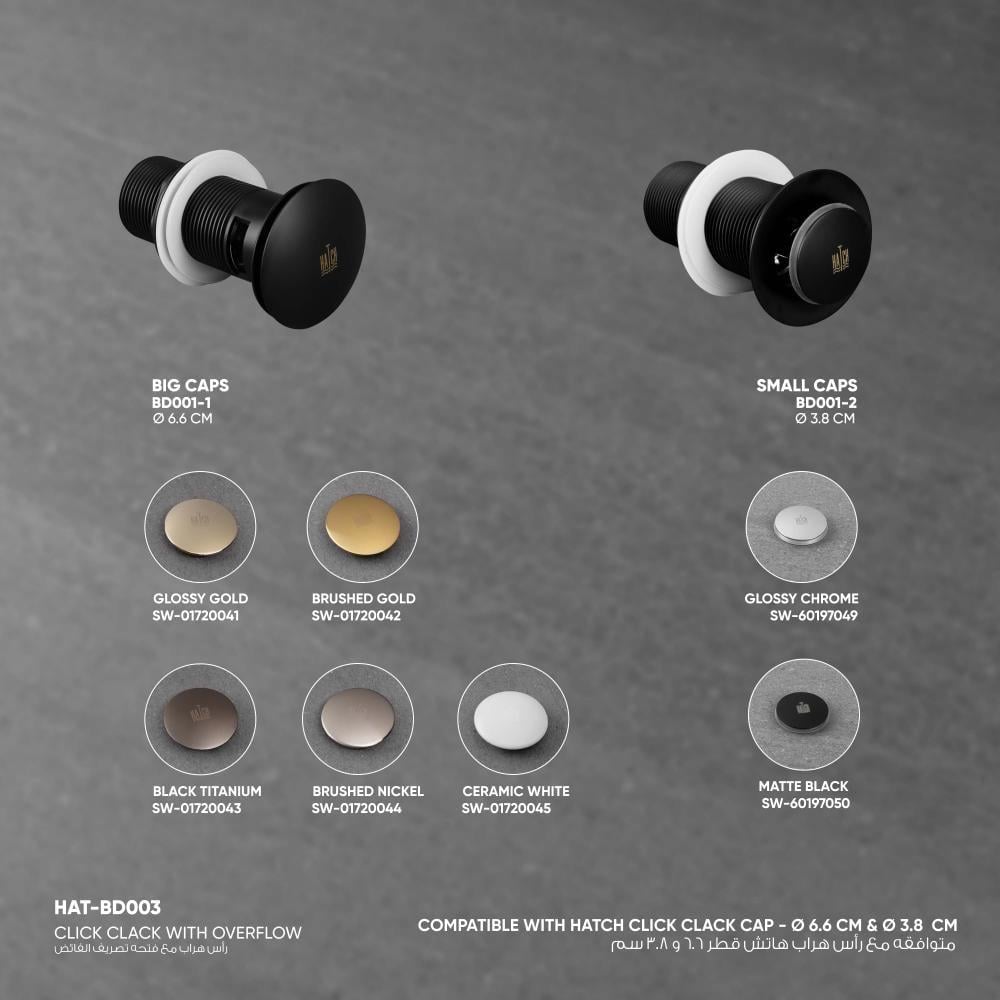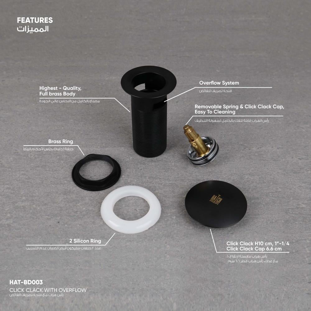 المادة : رأس هراب مغسلة من النحاس بالكامل مع فتحه تصريف الفائض وجلبة (حلقة) ربط نحاس وجلبتين عزل من السيليكون الأبيض