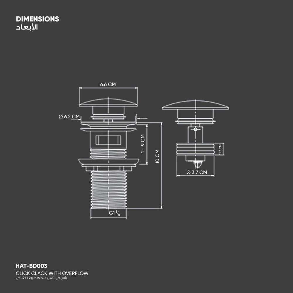 الأبعاد : ارتفاع 10 سم * قطر 4سم – قطر غطاء رأس الهراب 6.6 سم
