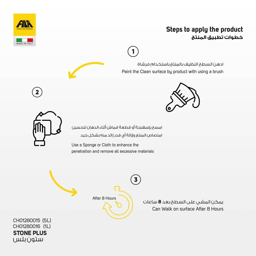 - يحمي ويعيد الحيوية إلى اللون الأصلي للحجر الطبيعي المصقول وغير المعالج والمتداعي.
