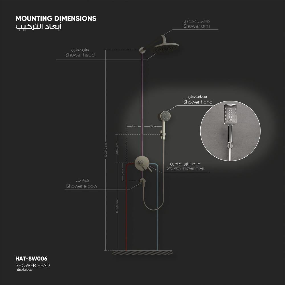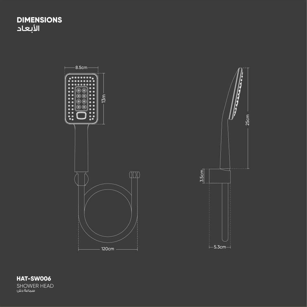 سماعة الدش: الطول 25 سم - العرض 8,5 سم.