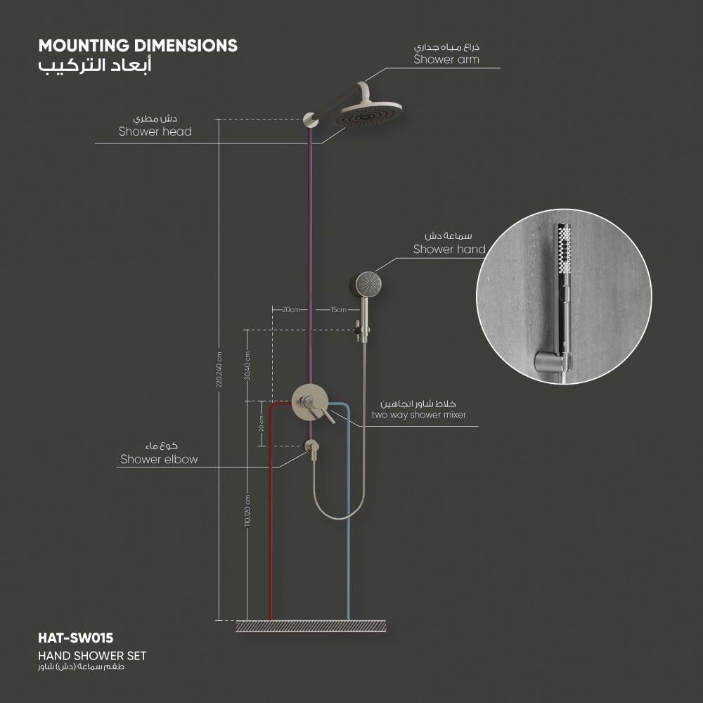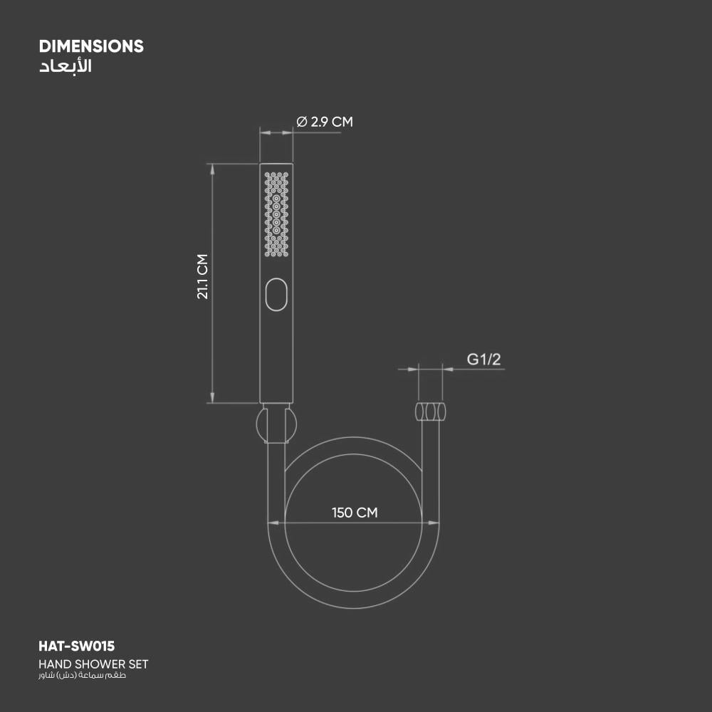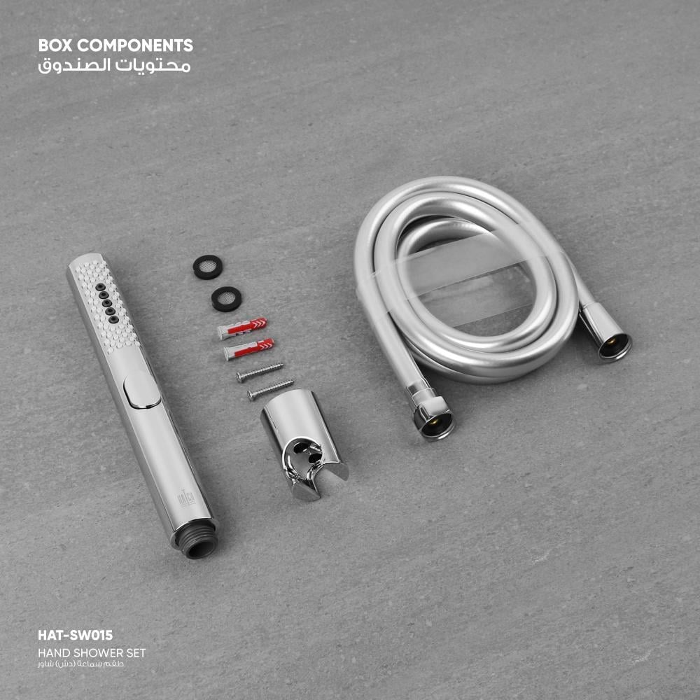 المادة: سماعة دش (شاور) مع حامل من البلاستيك ، خرطوم (لي /هوز) من PVC ومسامير تثبيت من الاستانلس ستيل 304