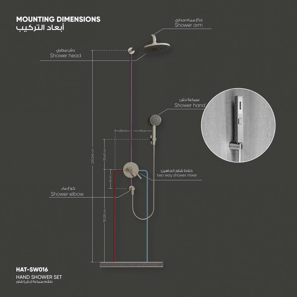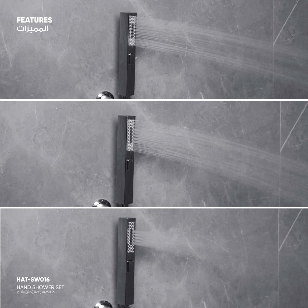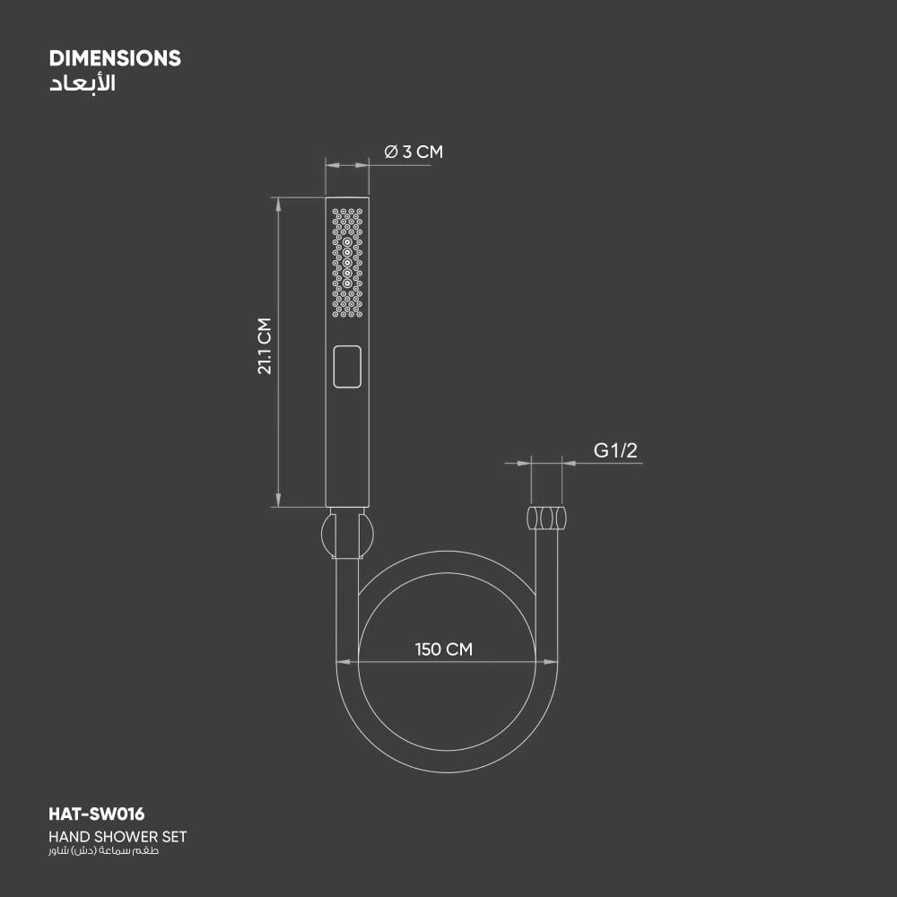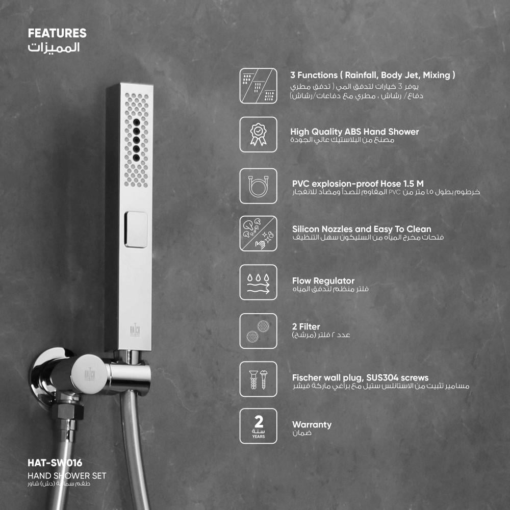 المادة: سماعة دش (شاور) مع حامل من البلاستيك ، خرطوم (لي /هوز) من PVC ومسامير تثبيت من الاستانلس ستيل 304