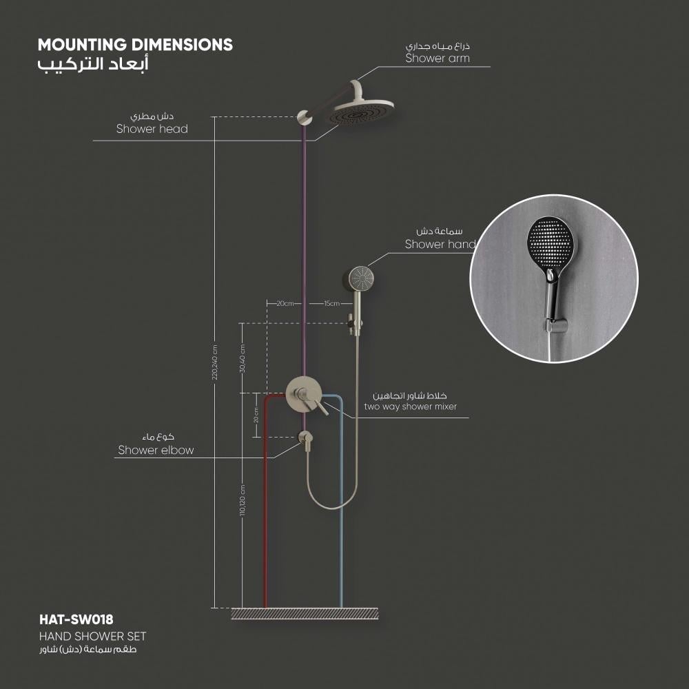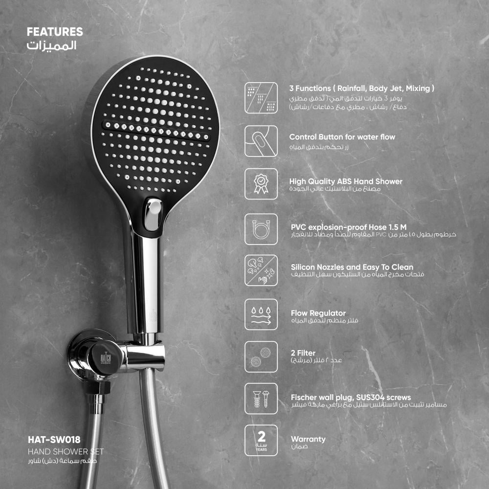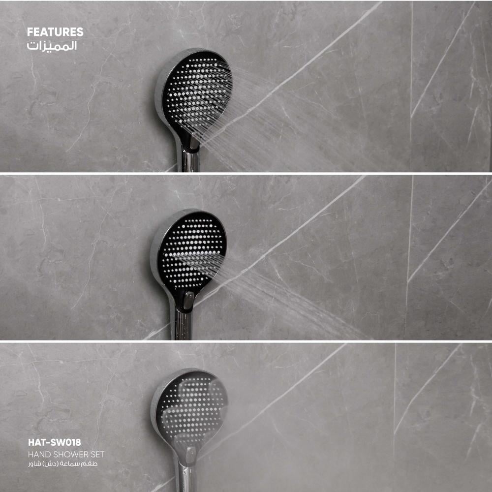 المادة: سماعة دش (شاور) مع حامل من البلاستيك ، خرطوم (لي /هوز) من PVC ومسامير تثبيت من الاستانلس ستيل 304