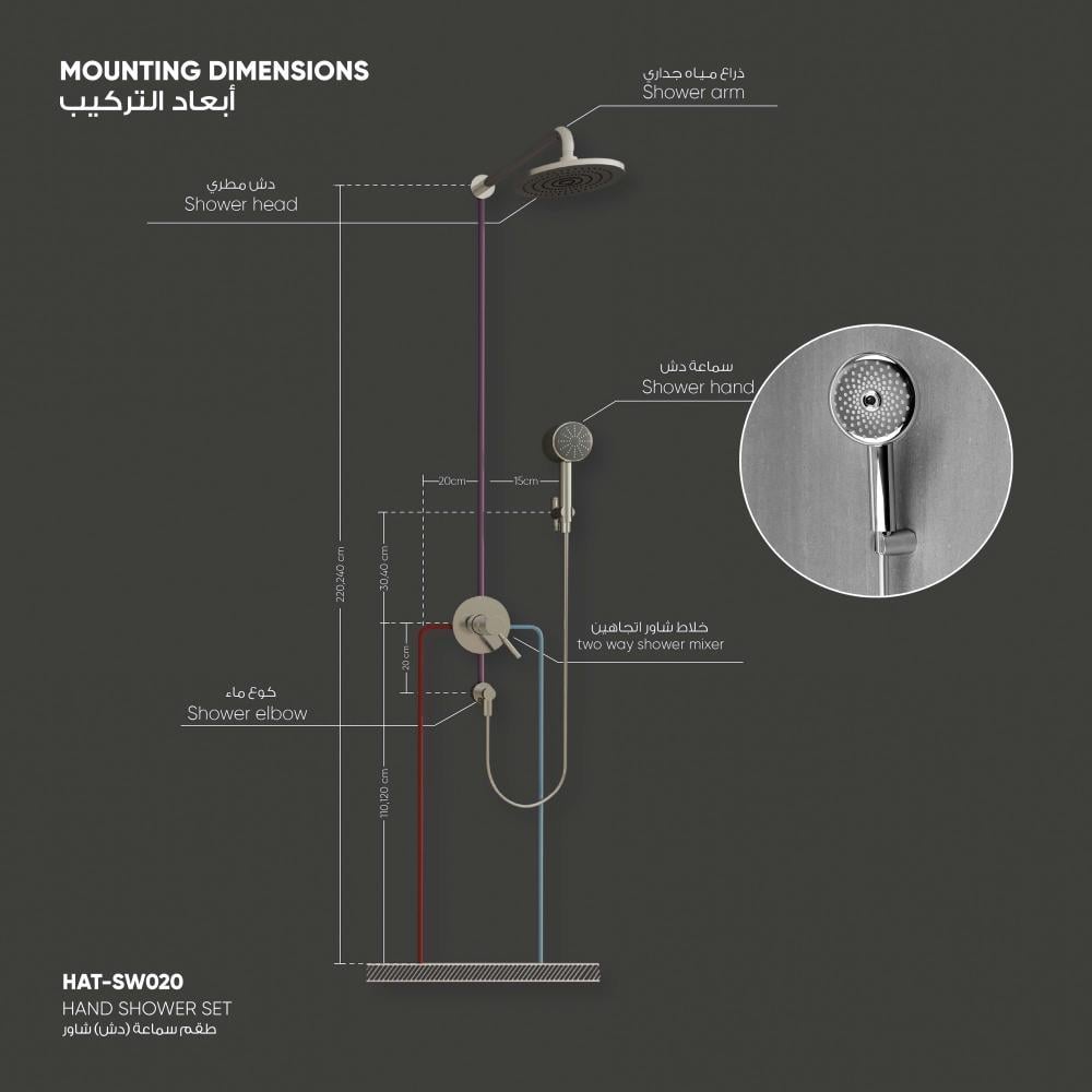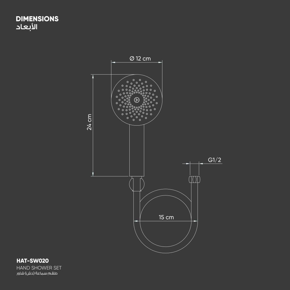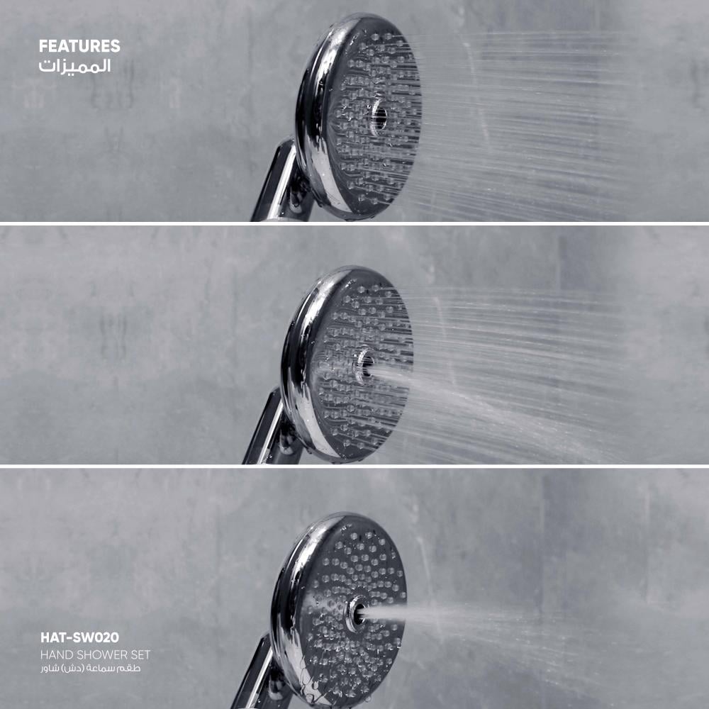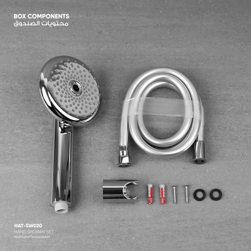 المادة: سماعة دش (شاور) مع حامل من البلاستيك ، خرطوم (لي /هوز) من PVC ومسامير تثبيت من الاستانلس ستيل 304
