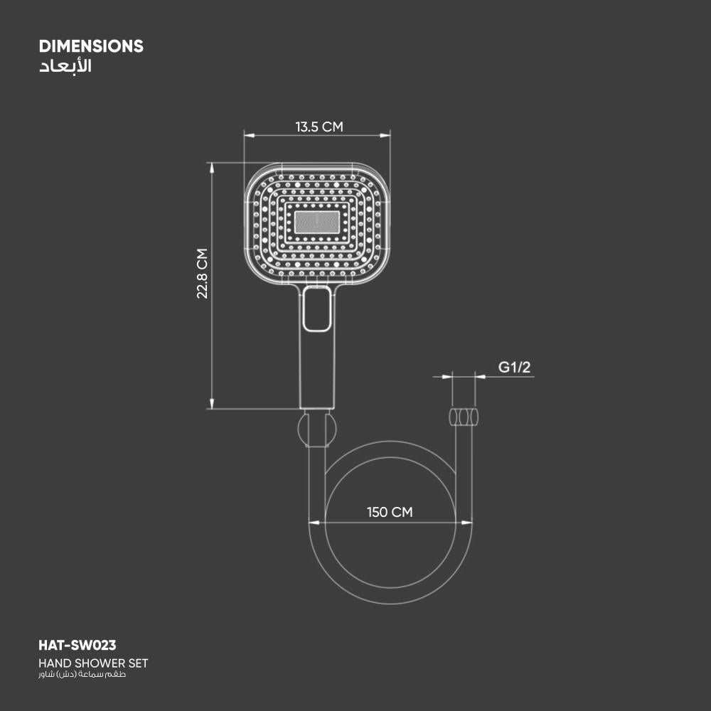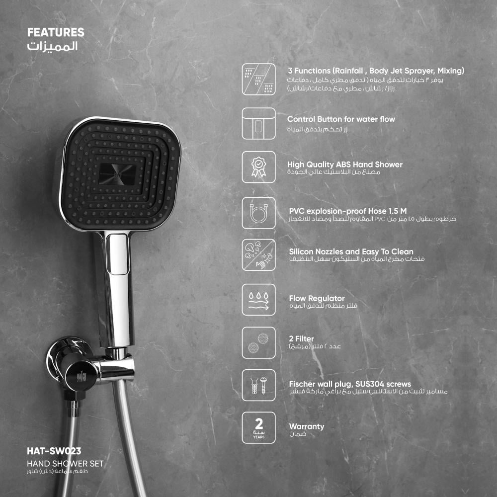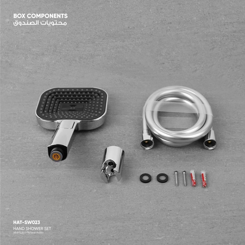 المادة: سماعة دش (شاور) مع حامل من البلاستيك ، خرطوم (لي /هوز) من PVC ومسامير تثبيت من الاستانلس ستيل 304