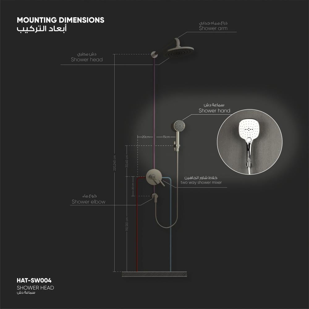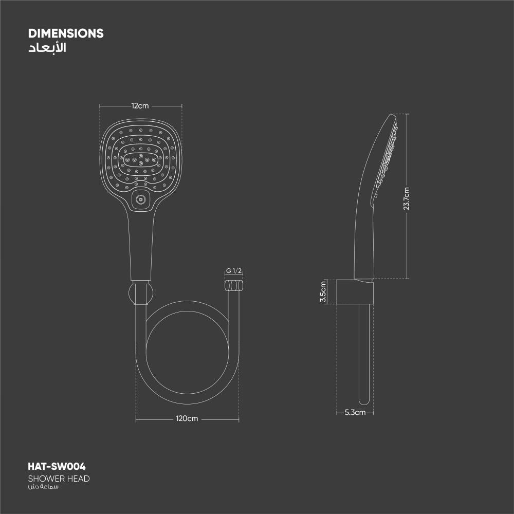 سماعة الدش: الطول 23.7 سم - العرض 12 سم.