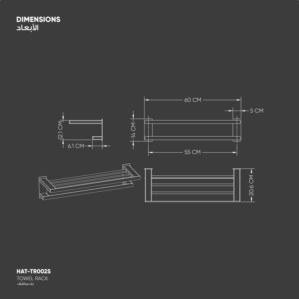 الأبعاد : العرض 60 العمق 20.6 الإرتفاع 14 سم