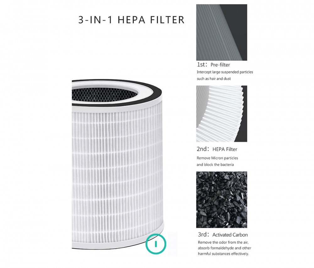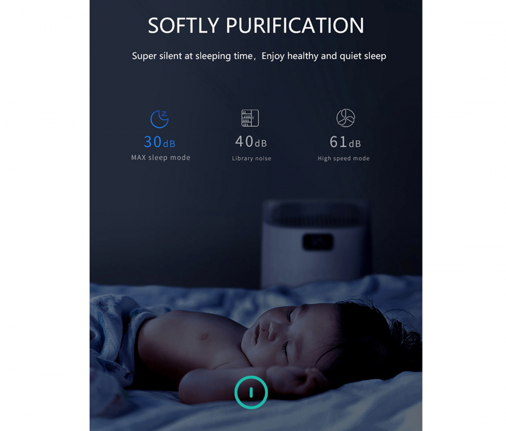 • ينقي الهواء من جميع الفيروسات والبكتيريا والروائح ومسببات الحساسية ۹۹,۹۷٪.