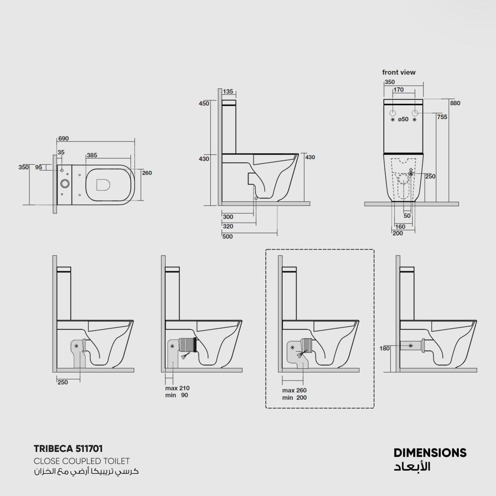 - نظام صرف متطور يوفر في استهلاك المياه"من 4.5 / 6 لتر في المرة