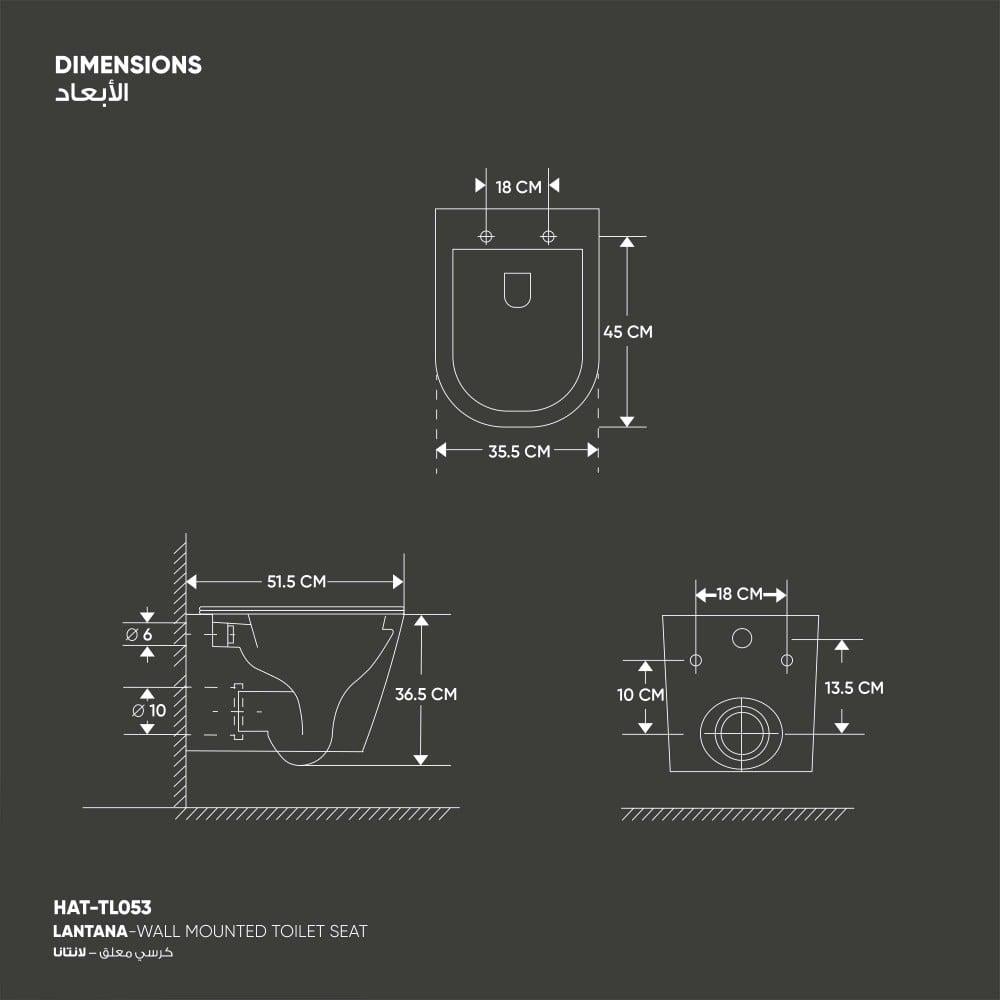 الأبعاد بين فتحي التثبيت الخلفية بالمرحاض 18 سم