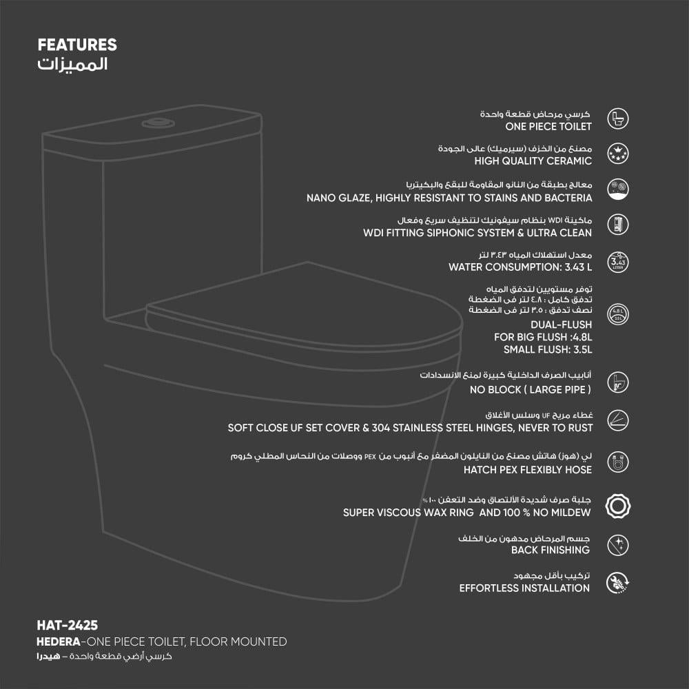 Hedera One-Piece Toilet HAT-2425 كرسي هيدرا أرضي قطعة واحدة