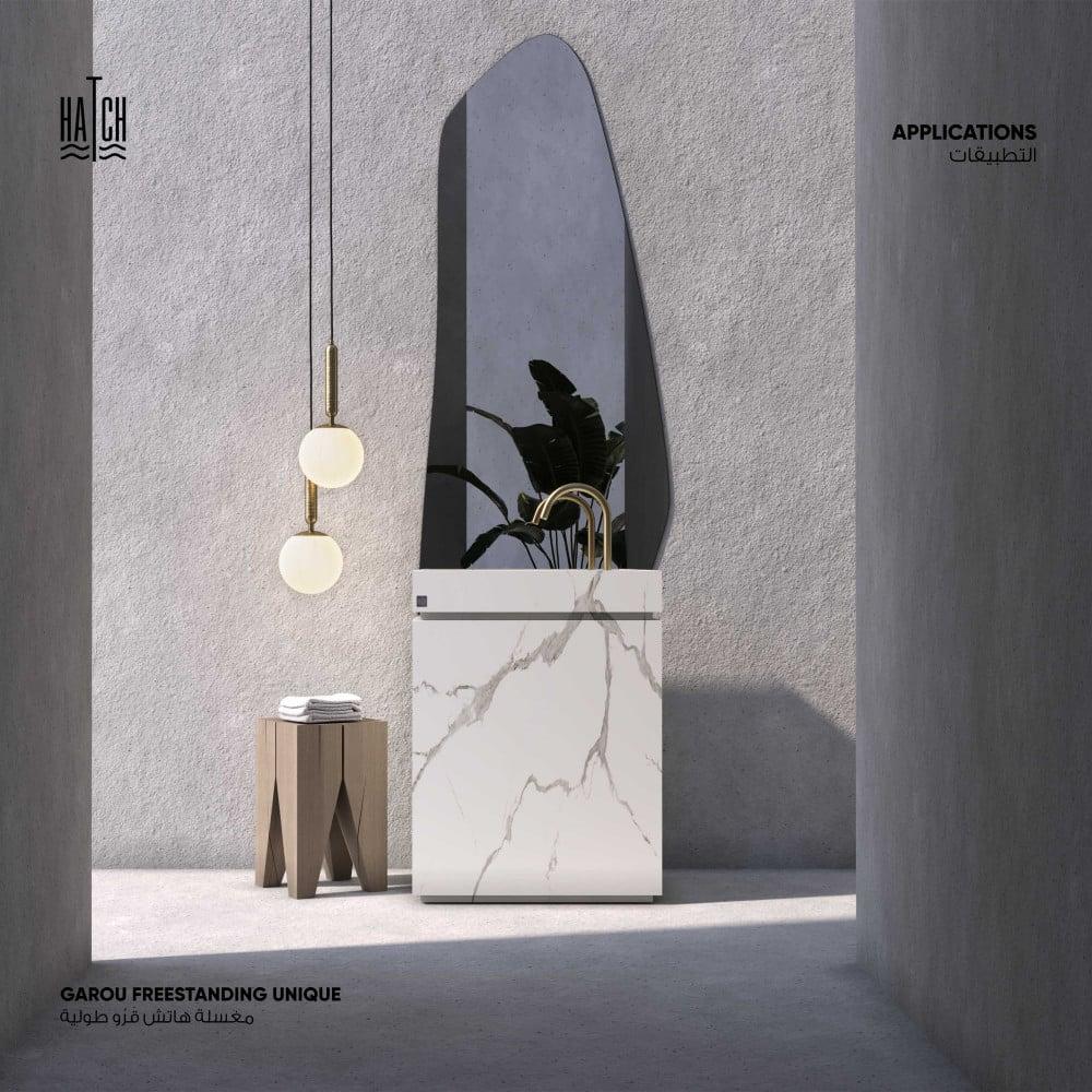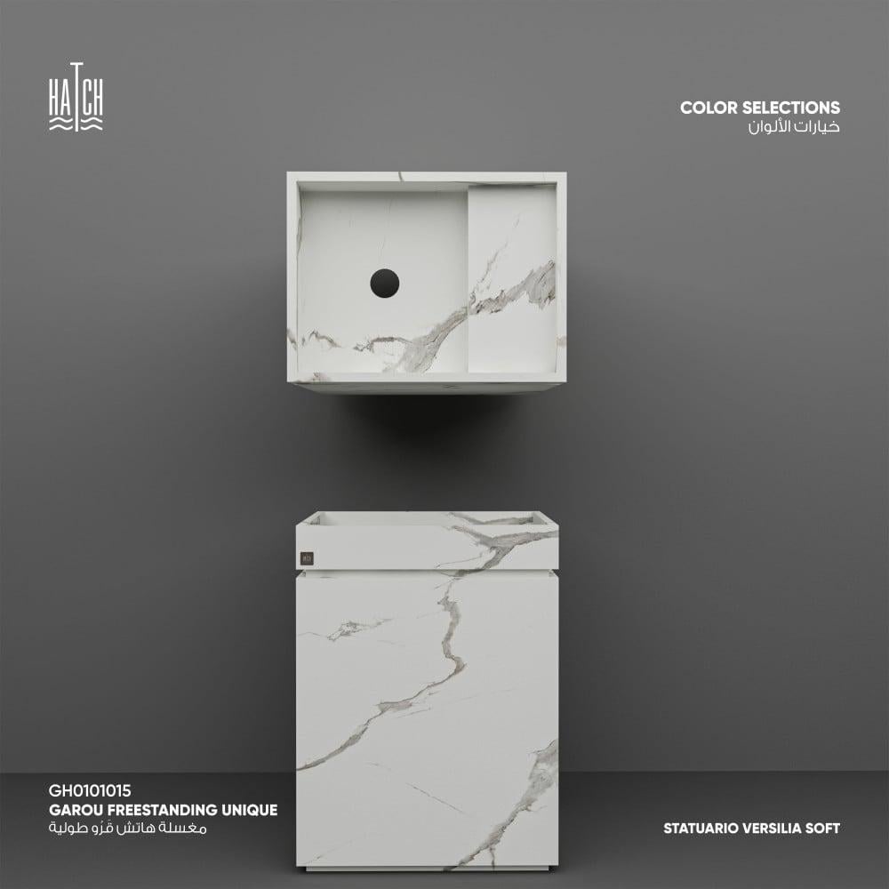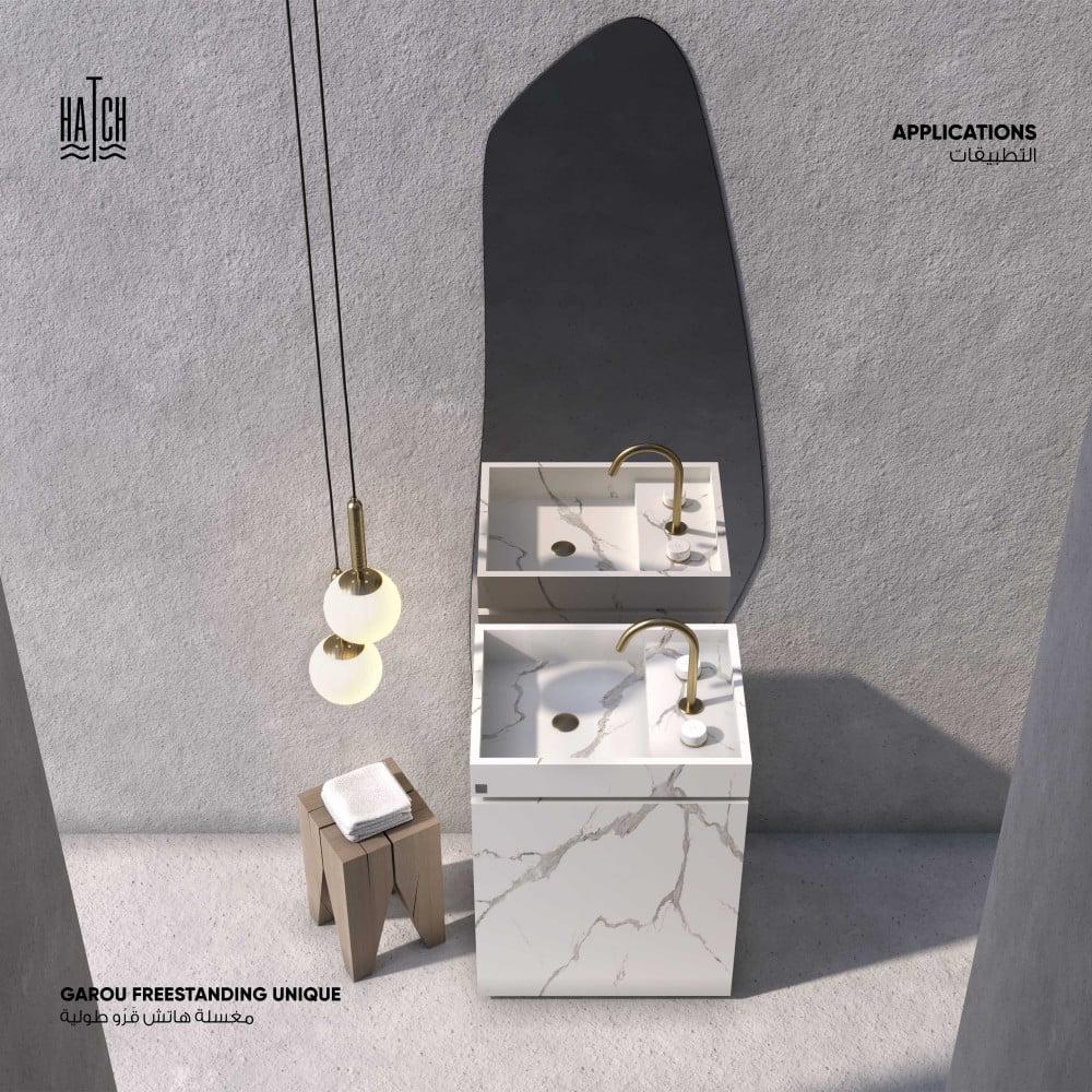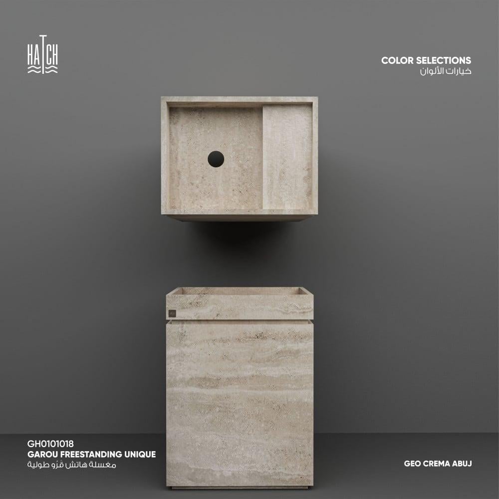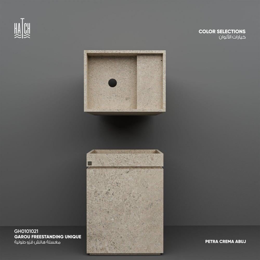 وصف المنتج : هاتش قَرُو مغاسل بورسلان بتصميم متنوع عصري مستوحى من تراثنا السعودي حيث يصف حوض المغسلة المصنوع من الحجر والطين كمواد طبيعة ومحلية.