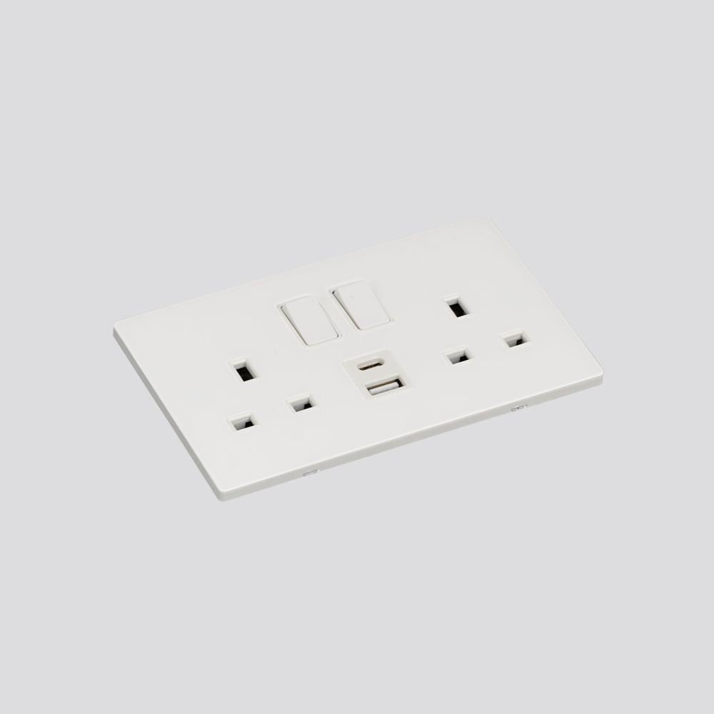 غطاء مقبس ثلاثي 13A ثنائي القطب مزدوج (أبيض) - LI532941