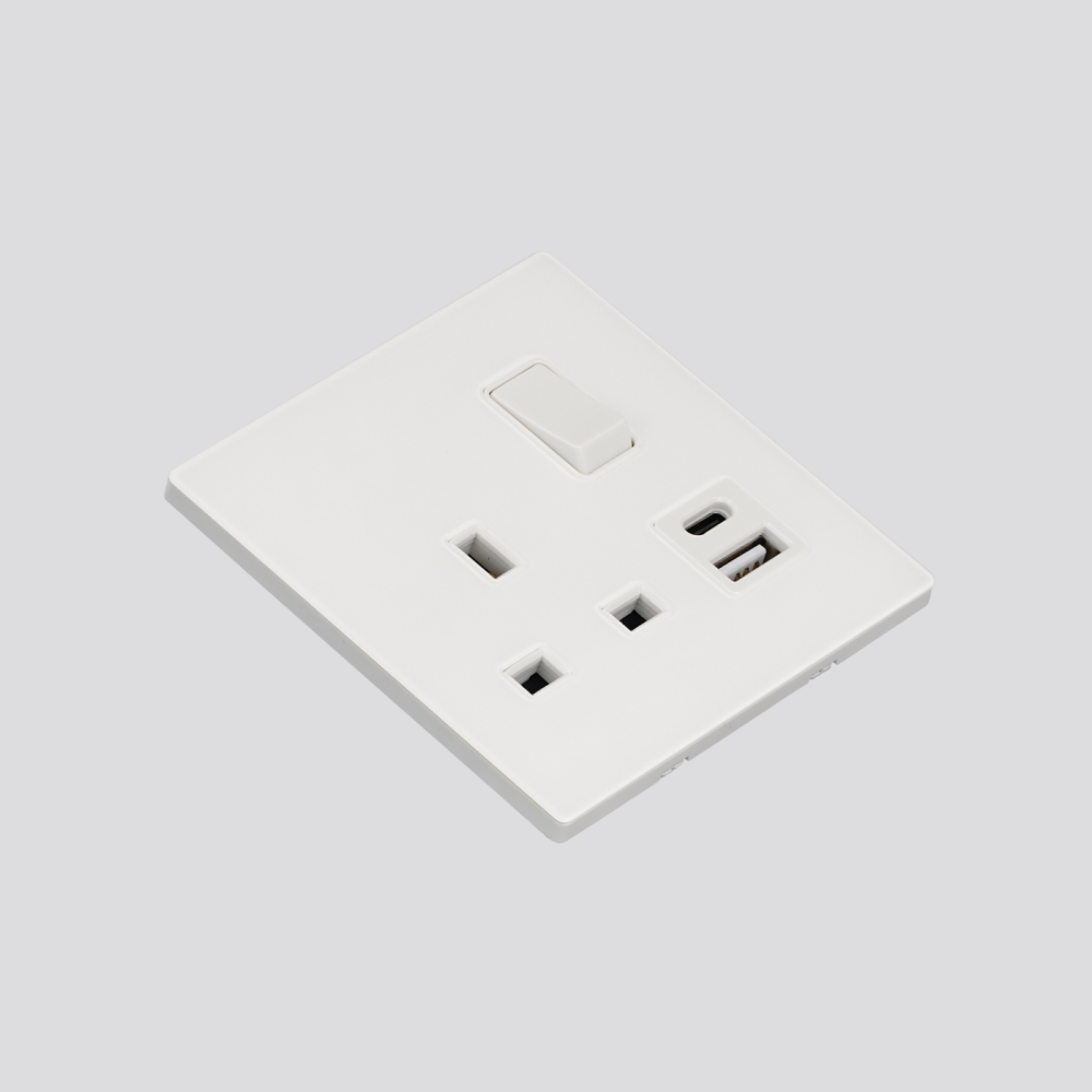 غطاء مقبس ثلاثي 13A + USB + شاحن (أبيض) - LI532936