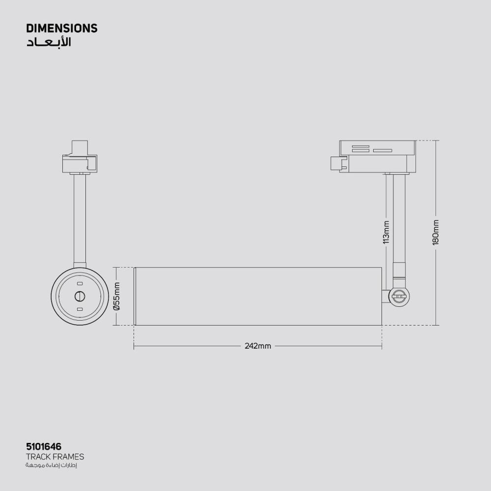 الأبعاد: القطر 55 مم * الطول 242 مم * الارتفاع 180 مم