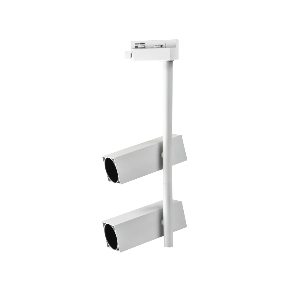 وحدة إضاءة موجهة بتصميم مربع أنيق ومزدوج، تُركب بسهولة على المسار. مثالية للإضاءة الدقيقة والمركزة في المساحات الداخلية مثل المعارض، المحلات التجارية، والمكاتب.