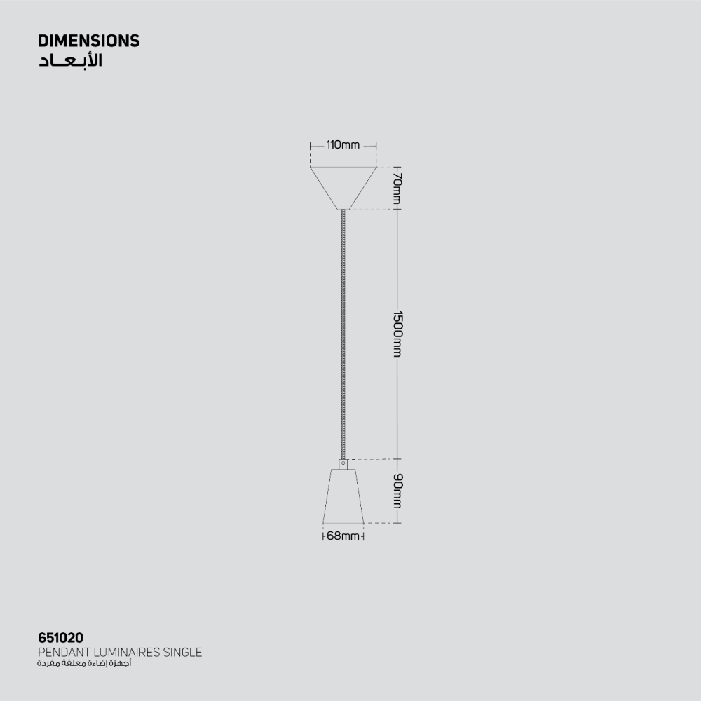 الأبعاد: القطر 68 مم × الطول 90 مم × الارتفاع 1500 مم