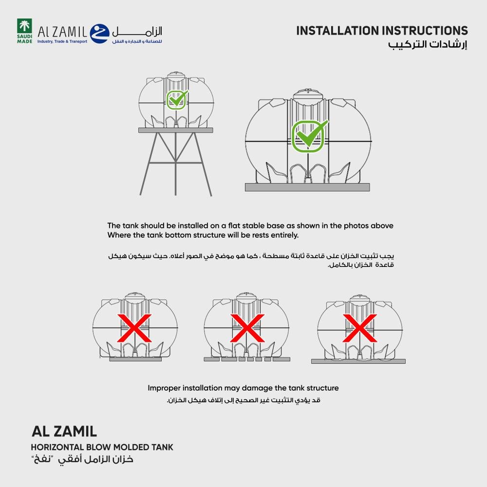 من شروط الضمان ان يكون الخزان بالكامل ملامس للسطح الموضوع عليه وان تكون قاعدة الخزان مستويه