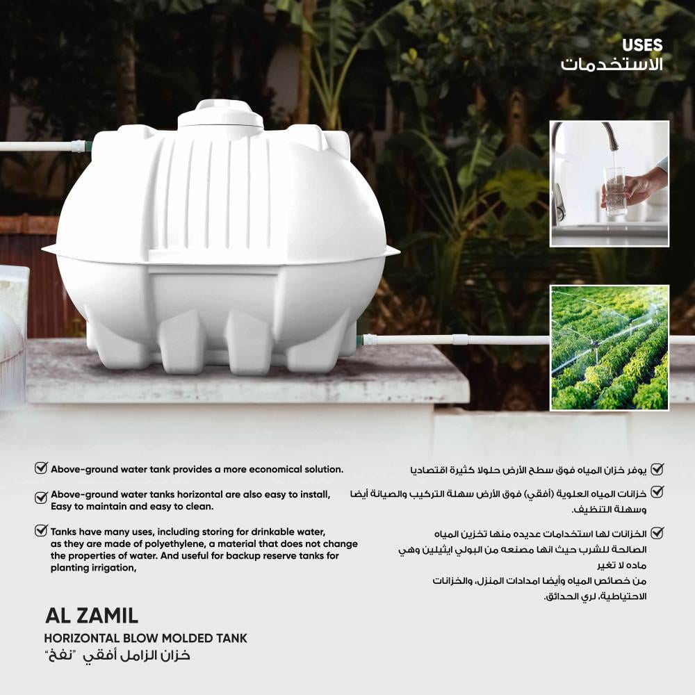 - الخزانات لها استخدامات عديده منها تخزين المياه الصالحة للشرب حيث انها مصنعه من البولي ايثيلين وهي ماده لا تغير من خصائص المياه وأيضا امدادات المنزل، والخزانات الاحتياطية، لري الحدائق