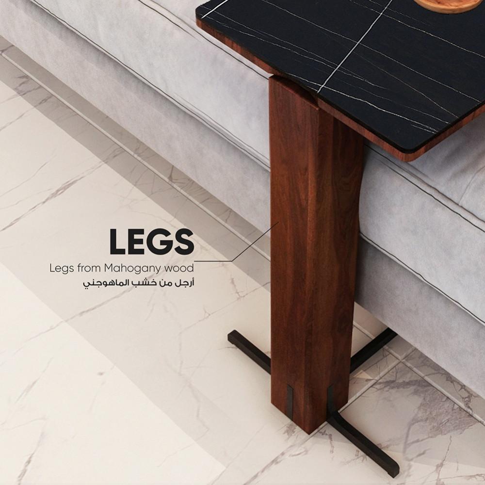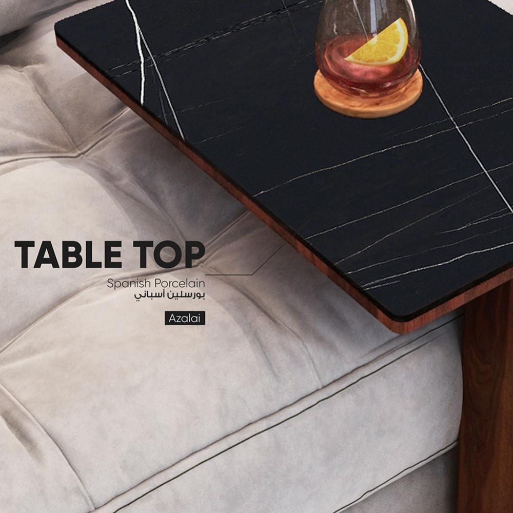 ذات سطح رفيع متحرك من البورسلين الأسباني يُقدر بسماكة 6ملم و أرجل من الفولاذ وخشب الماهوجني الخام.