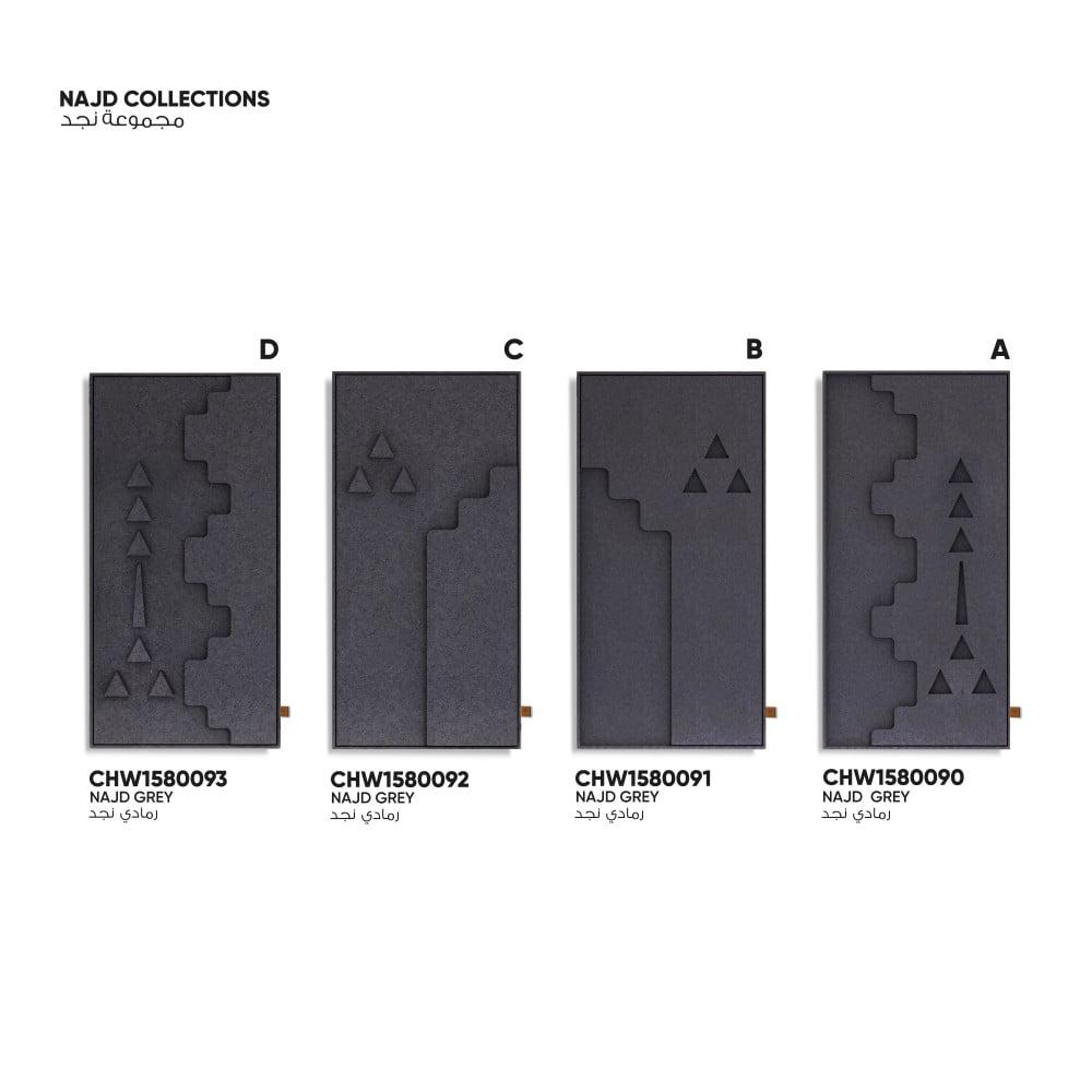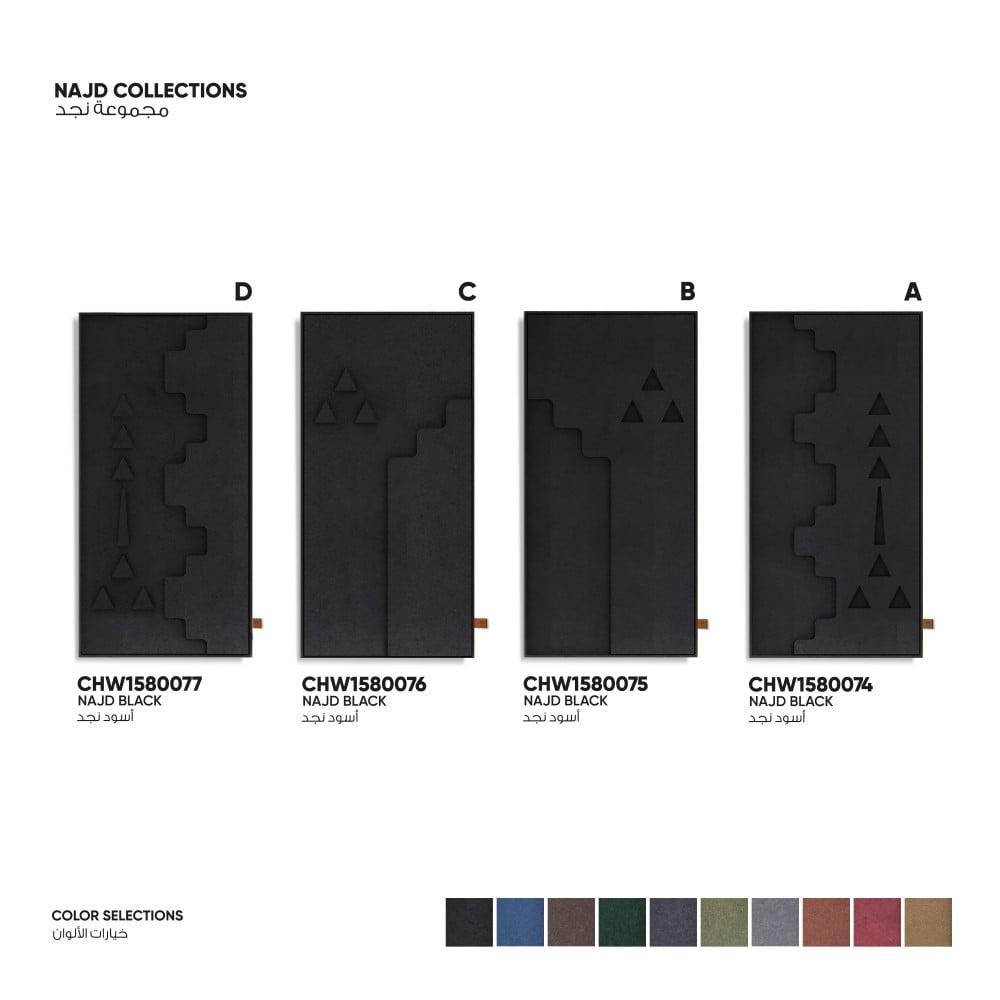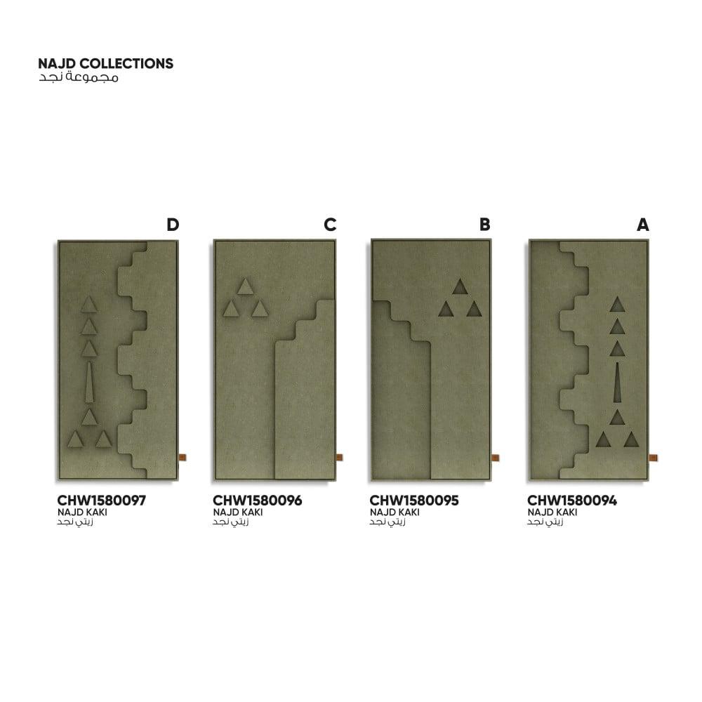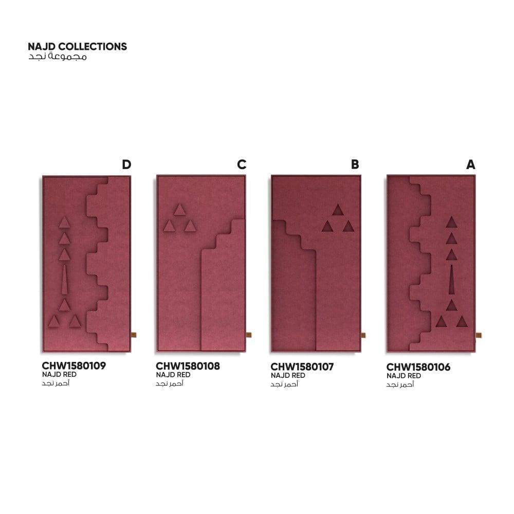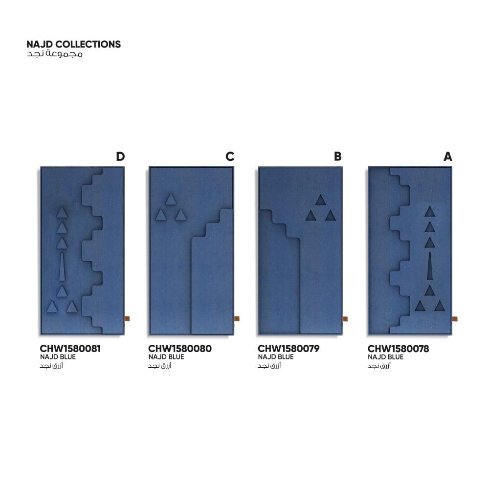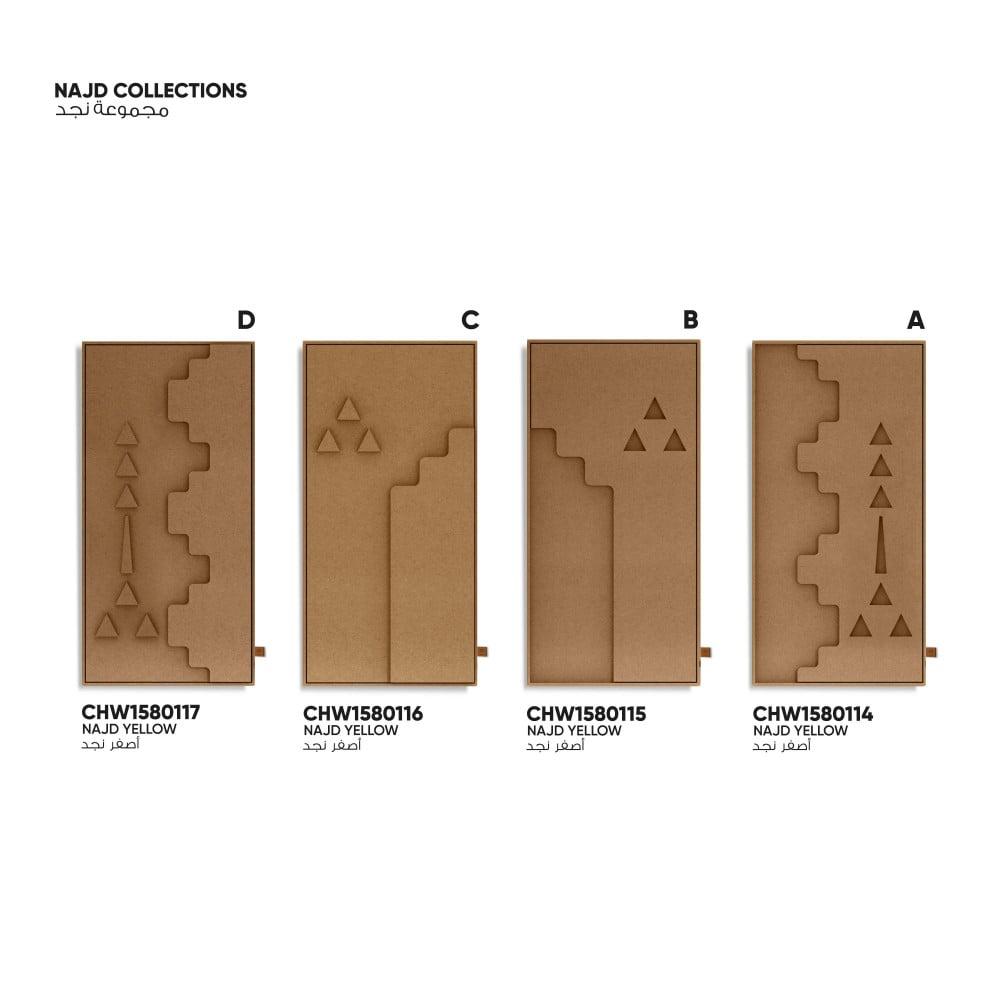 لوحة فنية جدارية مصنوعة من ألياف الفالكرومات الخشبية ومادة الريزين الملونة بتصميم مستوحى من الزخارف النجدية في البيوت الطينية حيث تم دمج الشّرَف و اللهوج بطريقة تجريدية لتضفي لمسة نجدية تراثيه لمساحتك