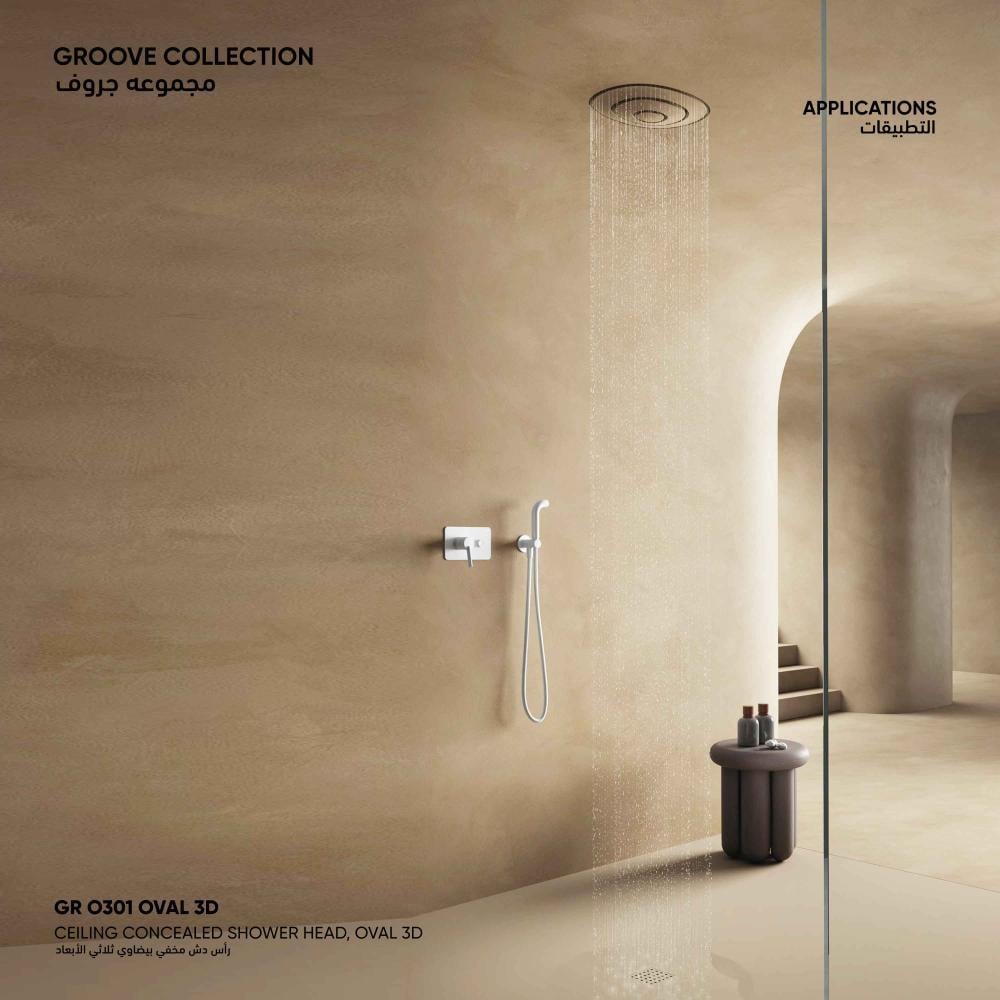 - تصميم مبتكر يدمج رأس الدش مع السقف ، مما يخلق حداثة وأناقة للحمام
