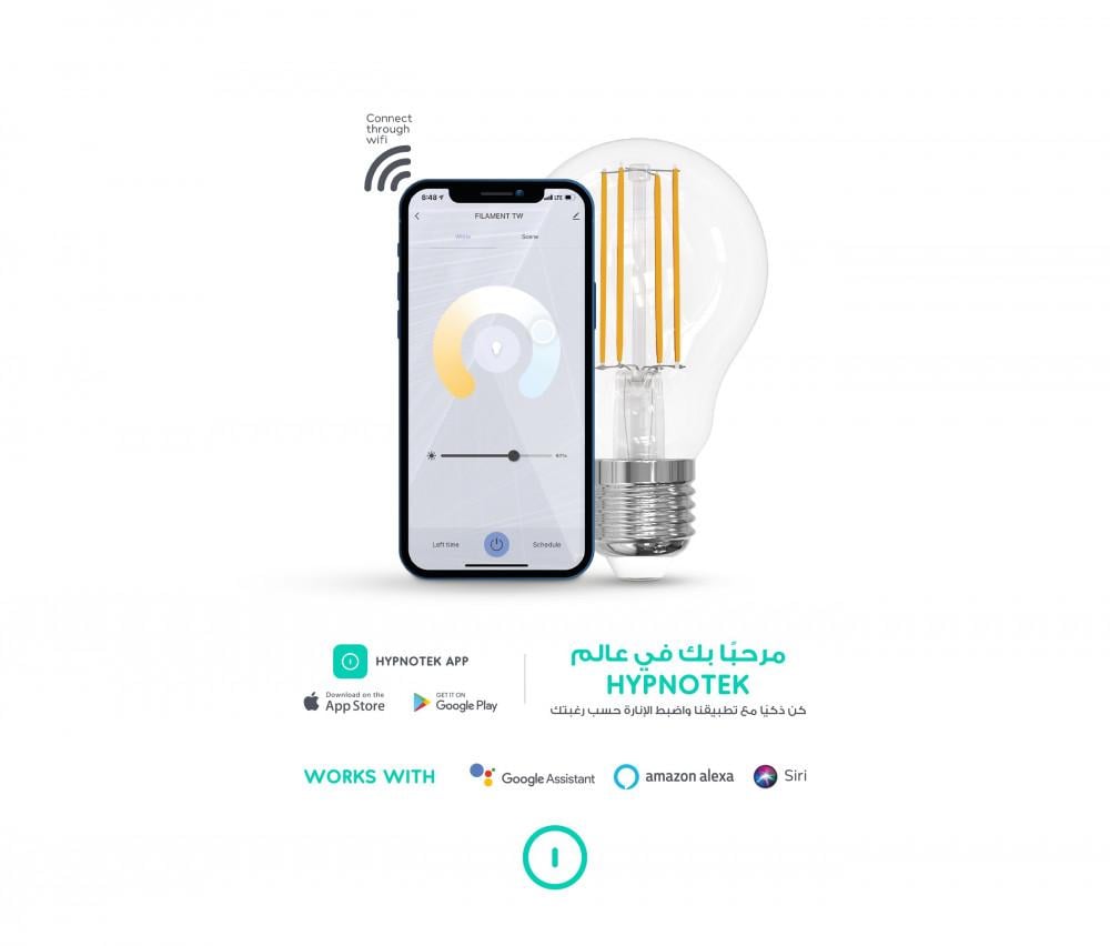 لمبة ذكية ذات قوة عالية 720 لومين للحصول على حياة ذكية. متوفرة داخل السعودية و دول الخليج للتوصيل. ترتبط بـ wifi للتحكم بها من التطبيق ومن أي مكان بالعالم وعند انقطاع الشبكة يمكنك التحكم بها من خلال البلوتوث عن طريق تطبيق هيبنوتيك ..