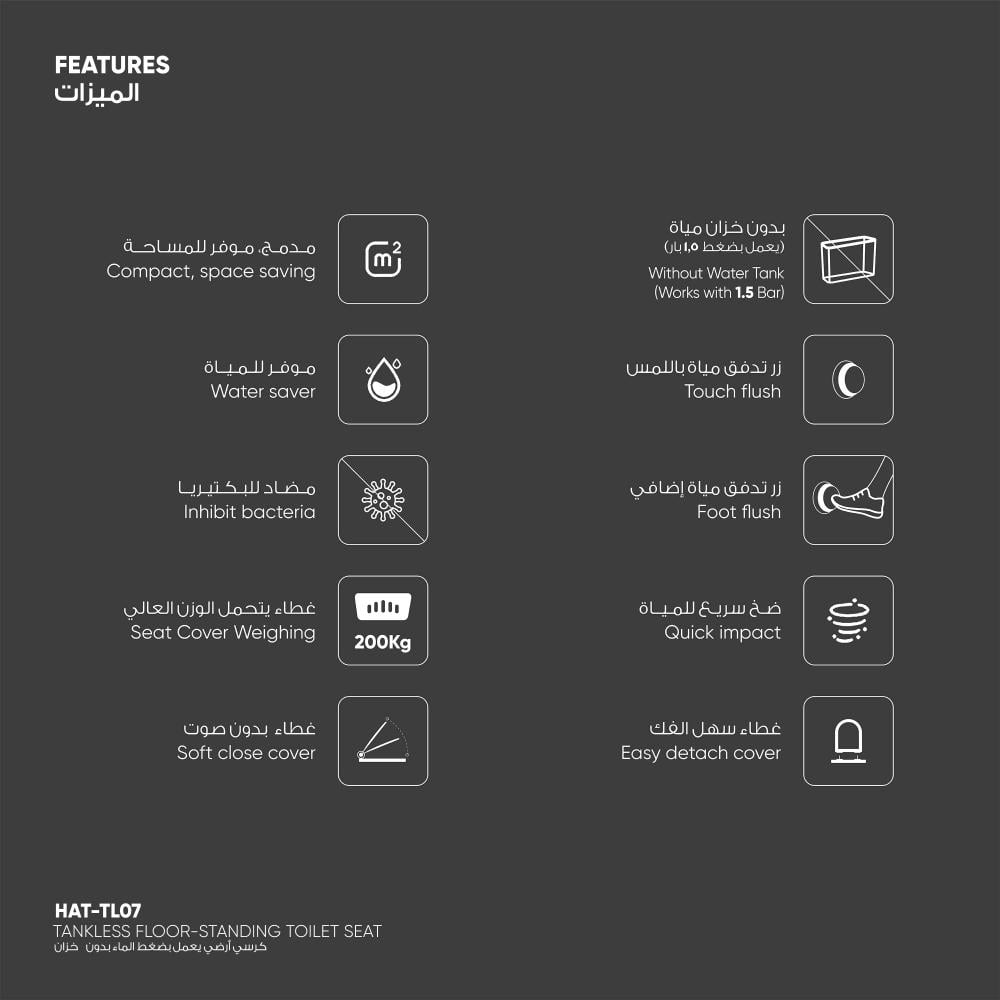 - يعمل بدون خزان مياه.