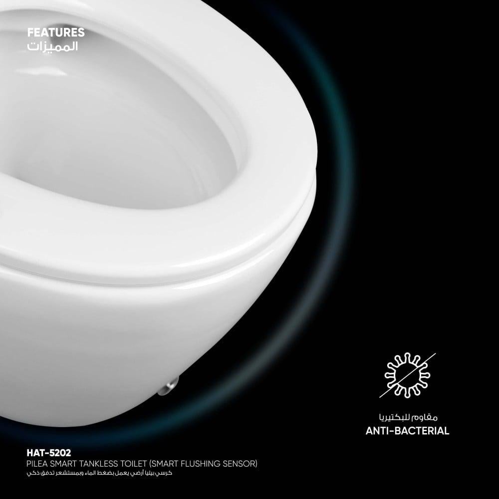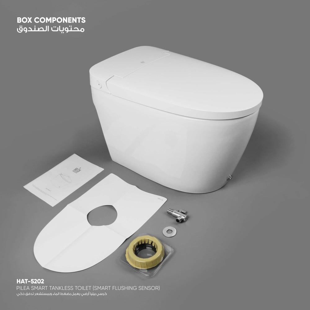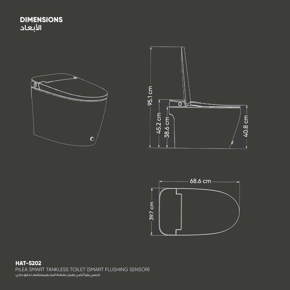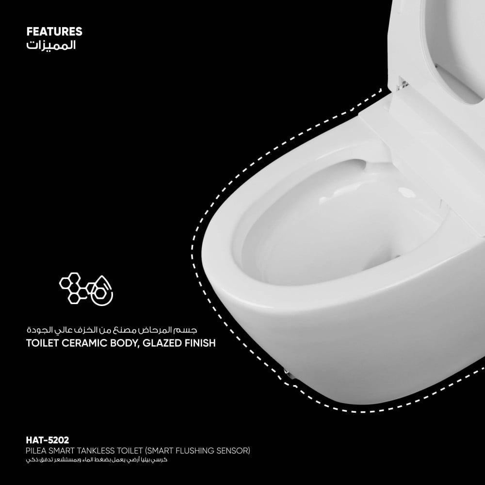 - غطاء من PP مريح وسلس الأغلاق مزود بمستشعر حركة لتدفق ذكي ، وزر جانبي للتدفق اليدوي