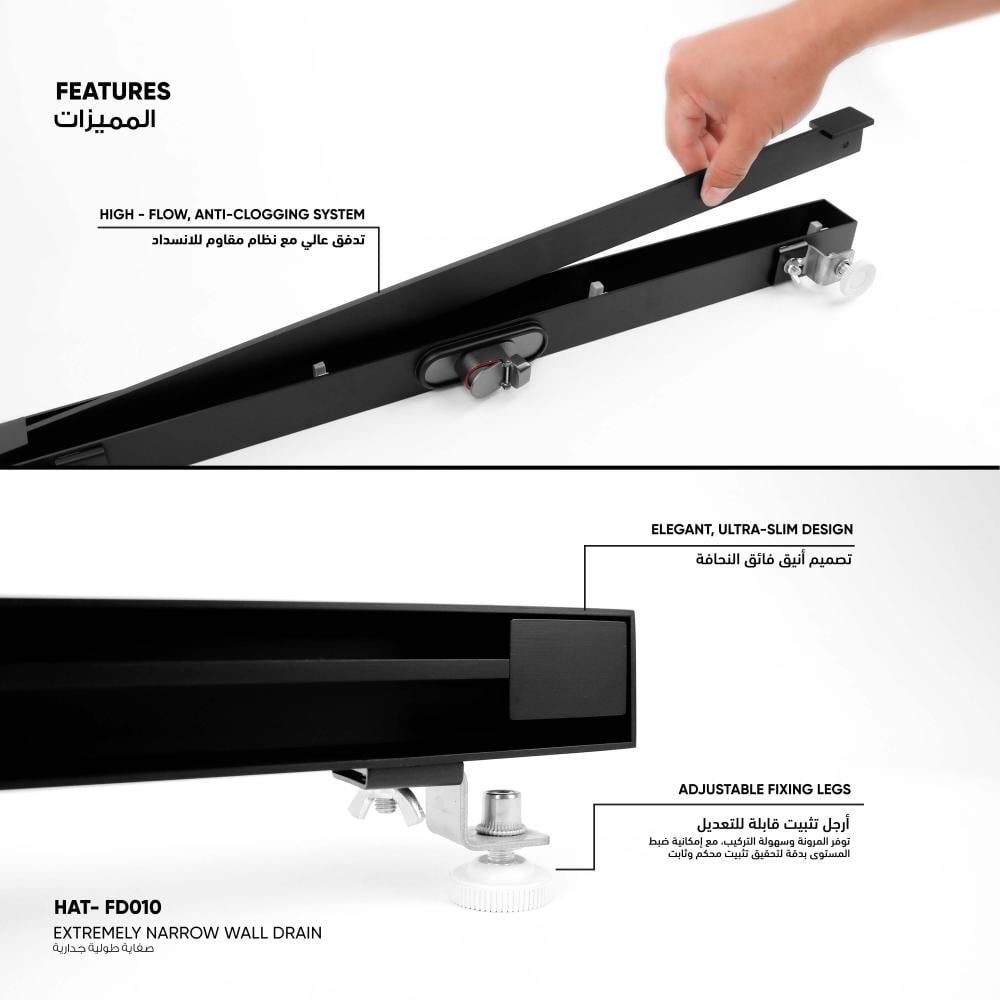 * تصريف فعّال وسهل التنظيف التصميم الخطّي يسمح بتصريف المياه بكفاءة عالية ويقلل من تجمع المياه على الأرض