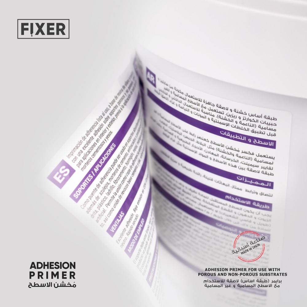 المادة: هو عبارة عن منتج مكون من السايلين, حبيبات الكوارتز و ريزين يعمل منتج فكسر مخشن الأسطح على صنع طبقة جاهزة لإستقبال المواد الأسمنتية كلاصق البلاط على مختلف الاسطح التي بالعادة تكون غير مهيئة لهذا الغرض.