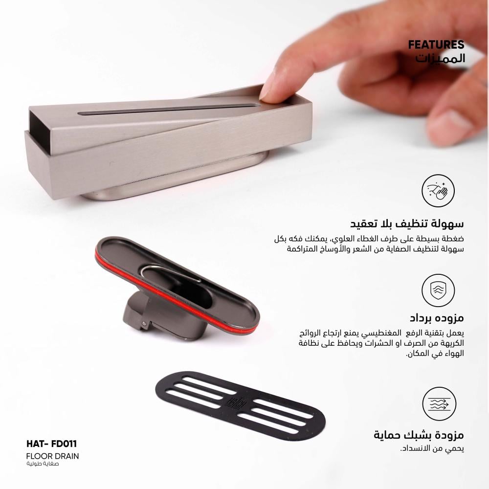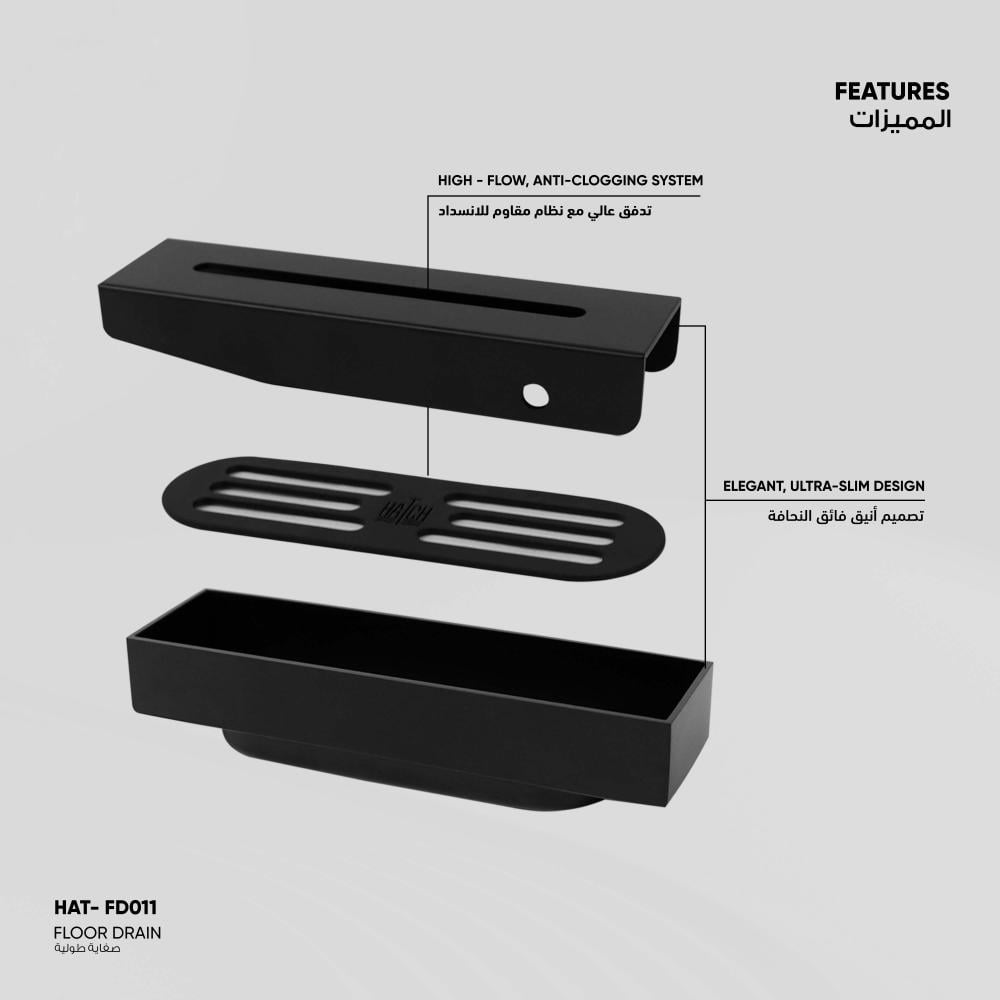 * تصريف فعّال وسهل التنظيف مصممة لتصريف المياه بسرعة وسطح أملس لمنع تراكم الأوساخ على السطح