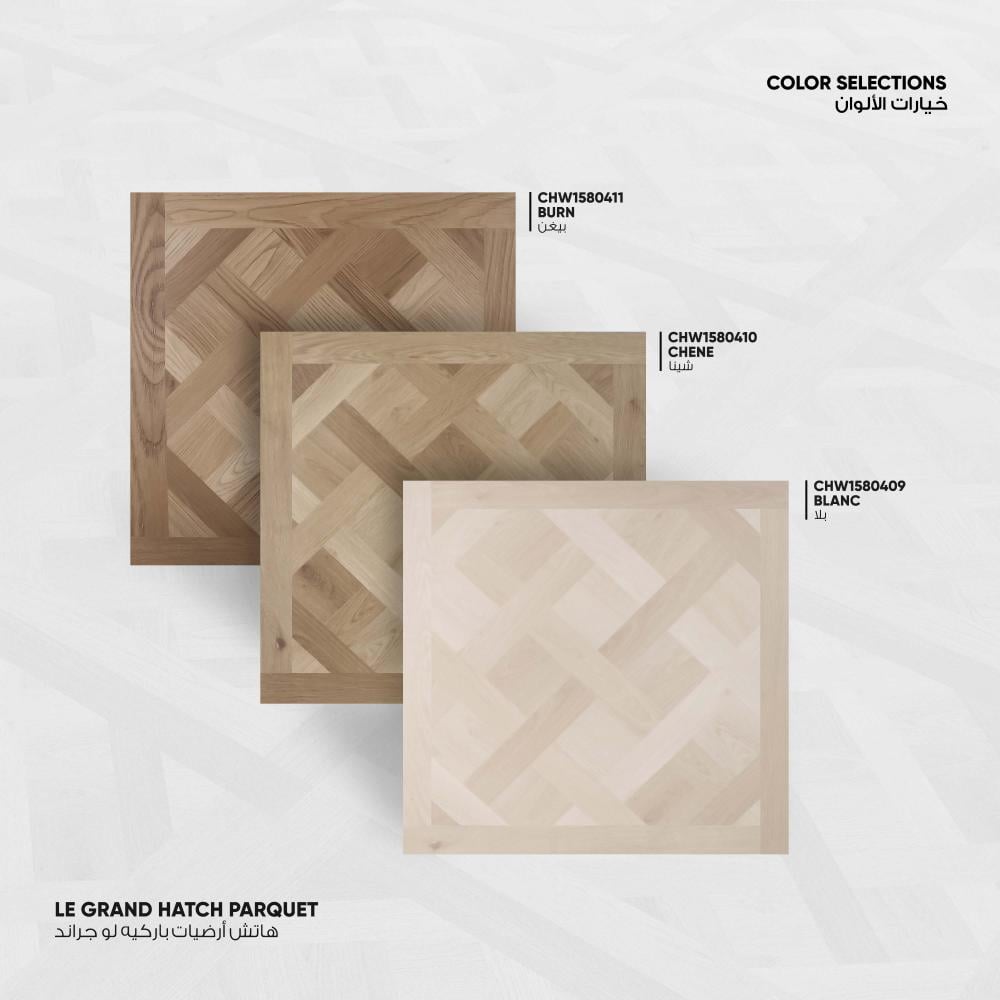 ملاحظة: نمط اسطح الباركية قد يختلف من لوح إلى آخر ليحاكي جمالية الخشب الطبيعي.