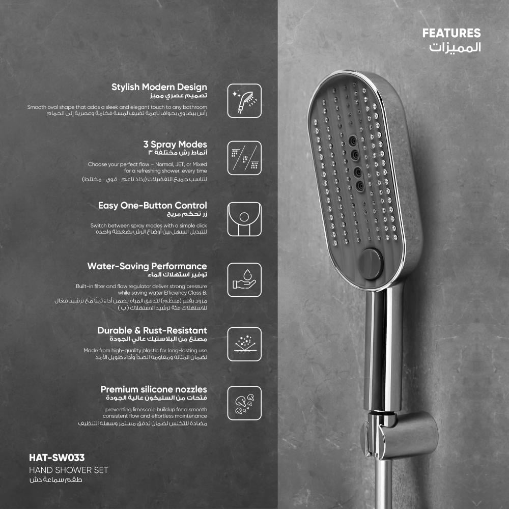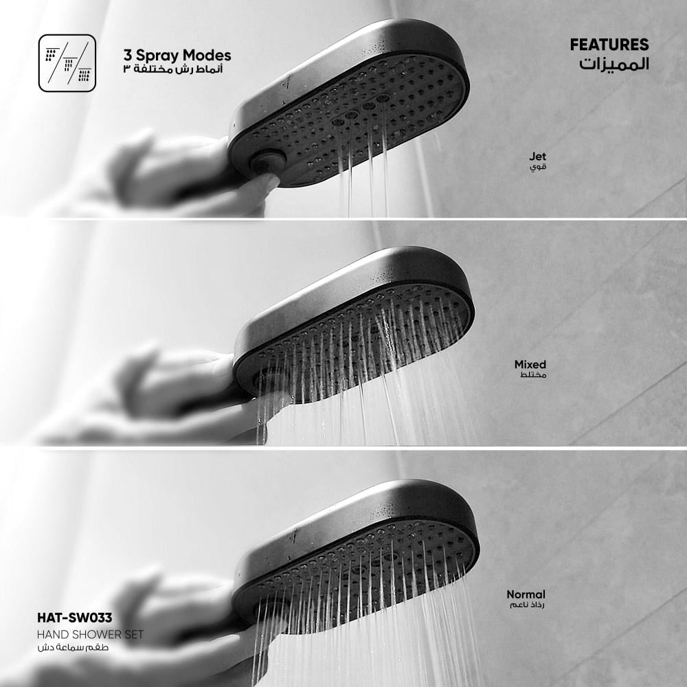 - 3 أنماط رش مختلفة لتناسب جميع التفضيلات (رذاذ ناعم – قوي – مختلط).